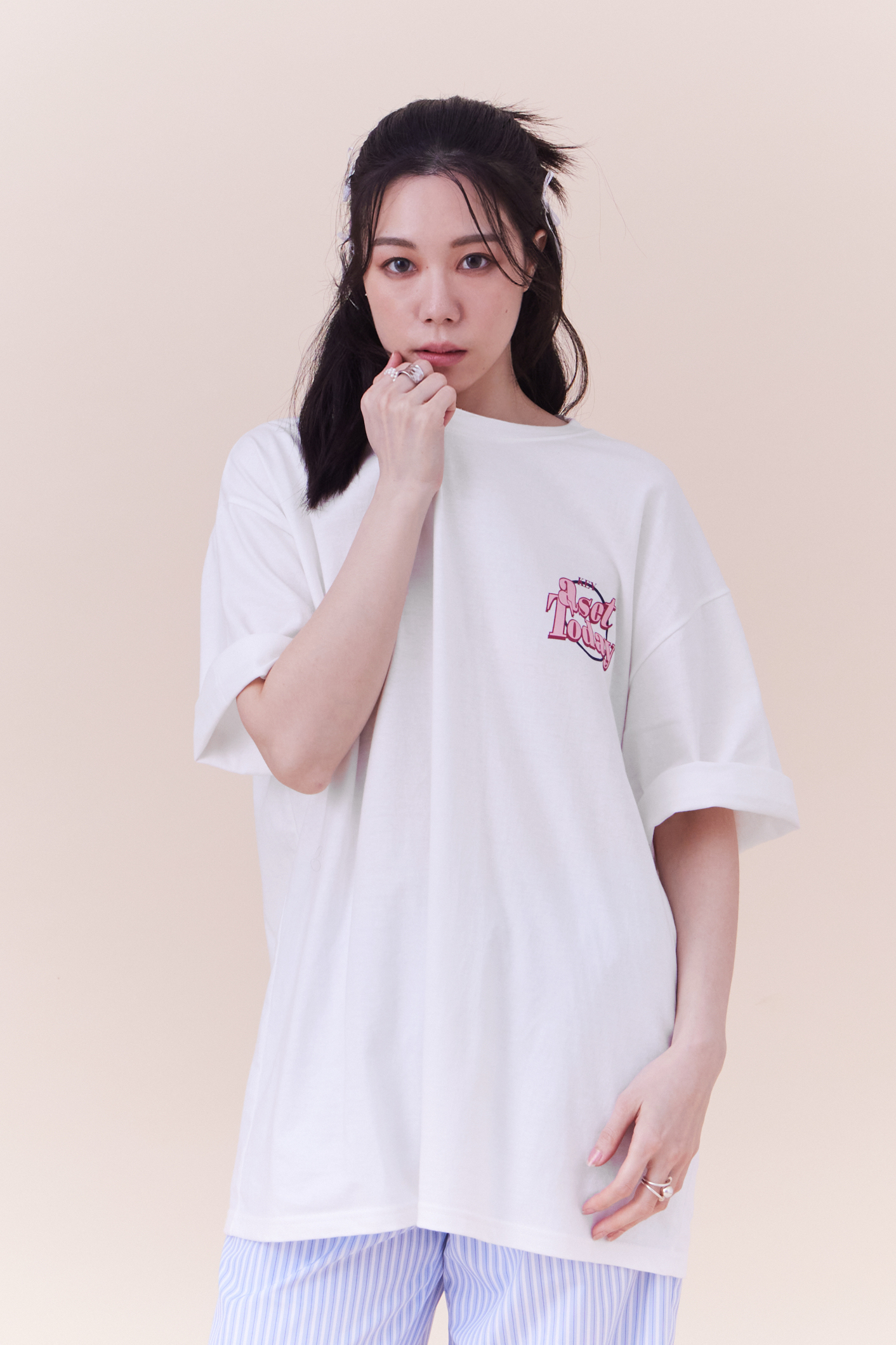 玫瑰帶刺親膚柔棉寬版T恤