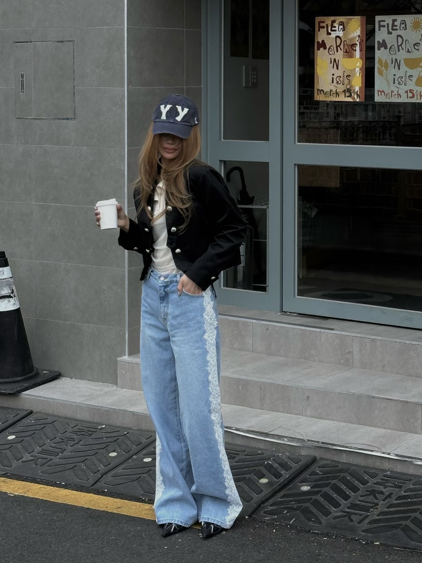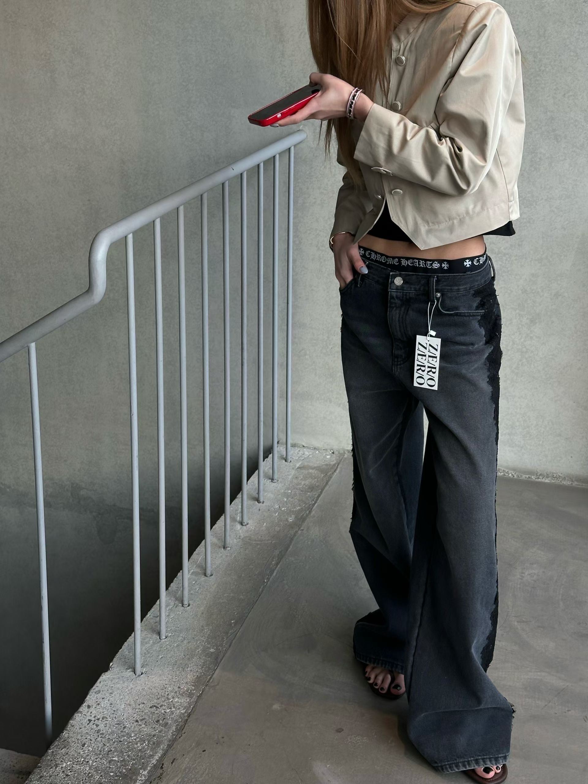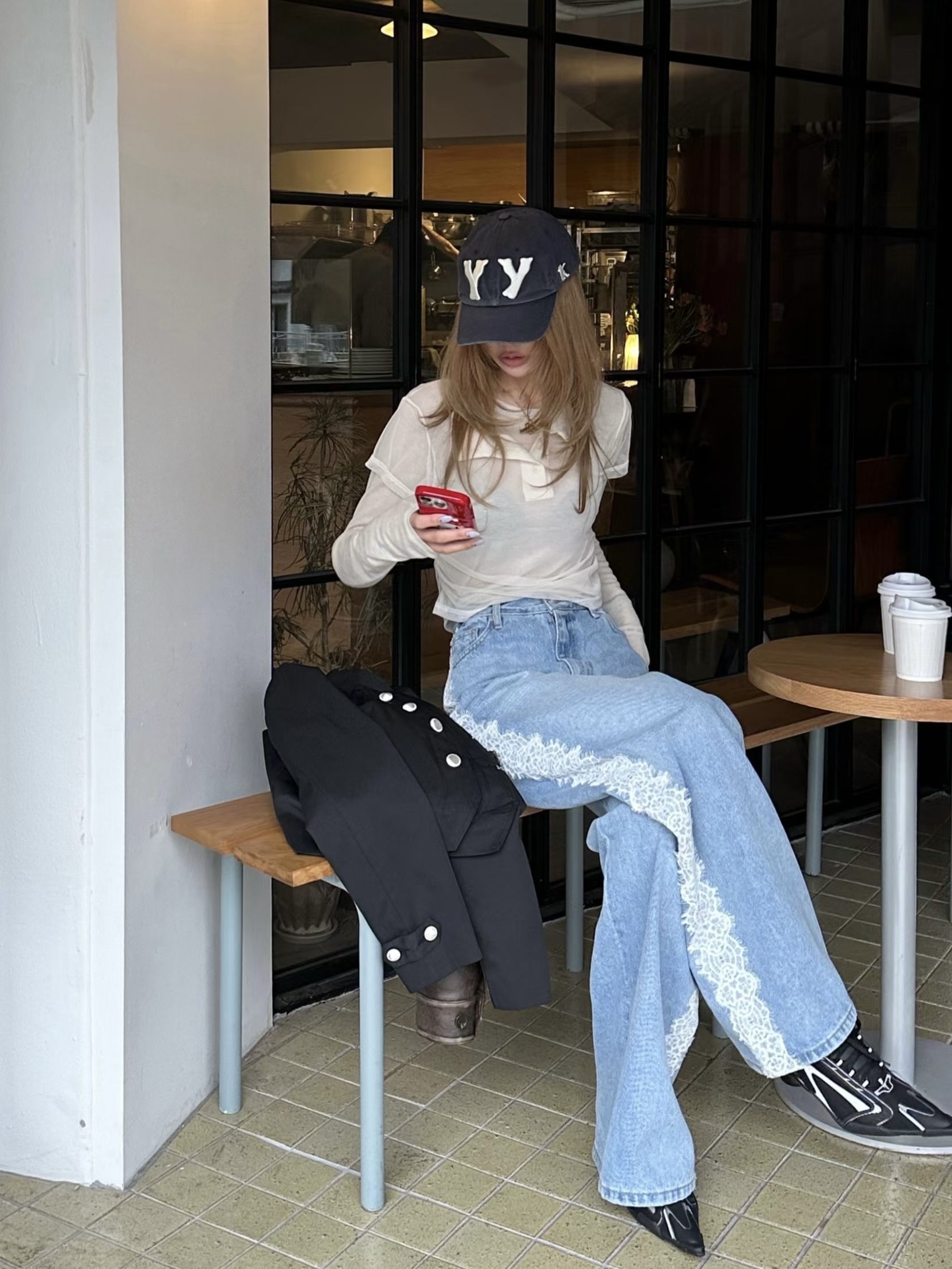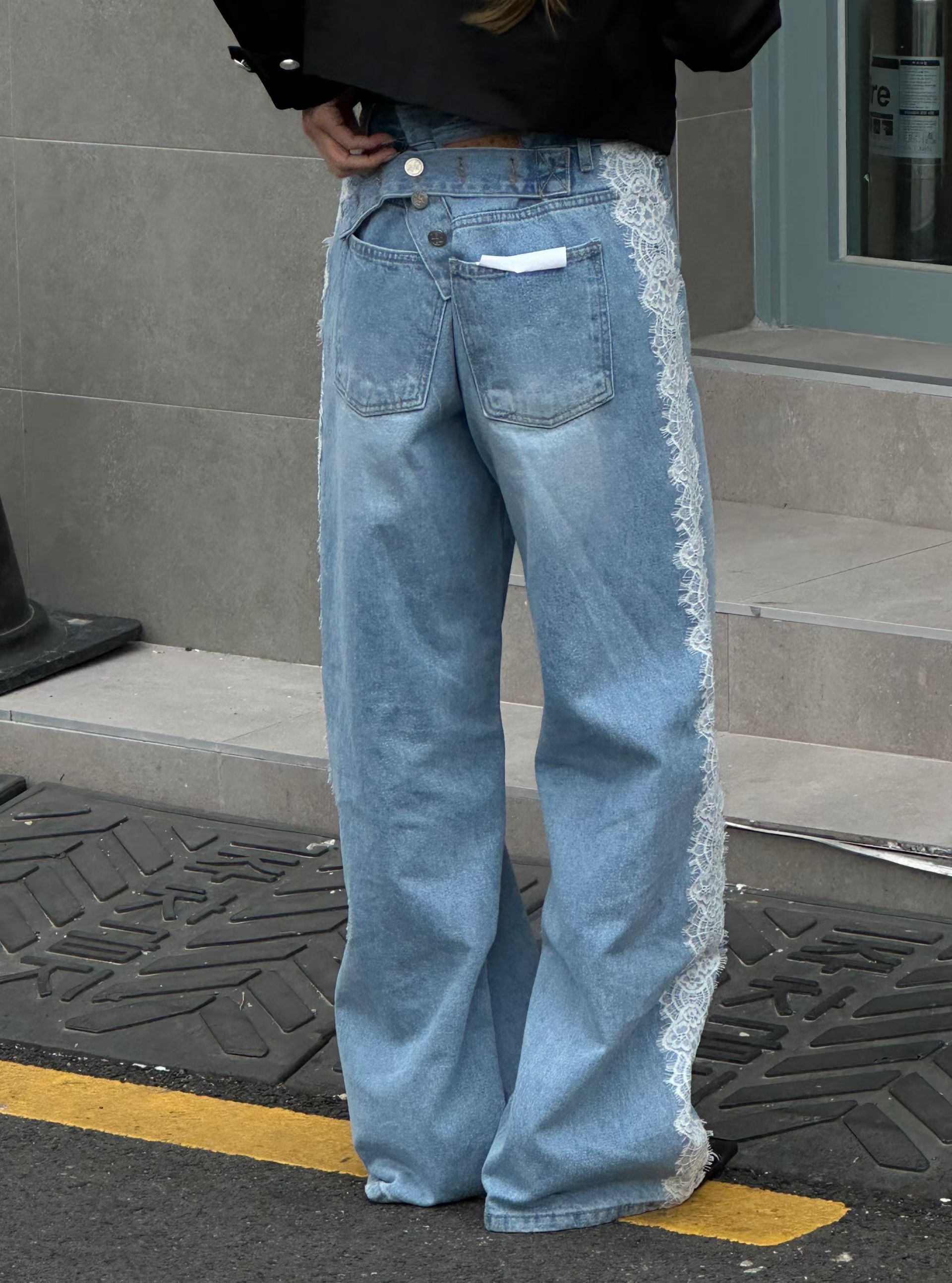 刷色好美寬鬆大反摺牛仔褲 S/M