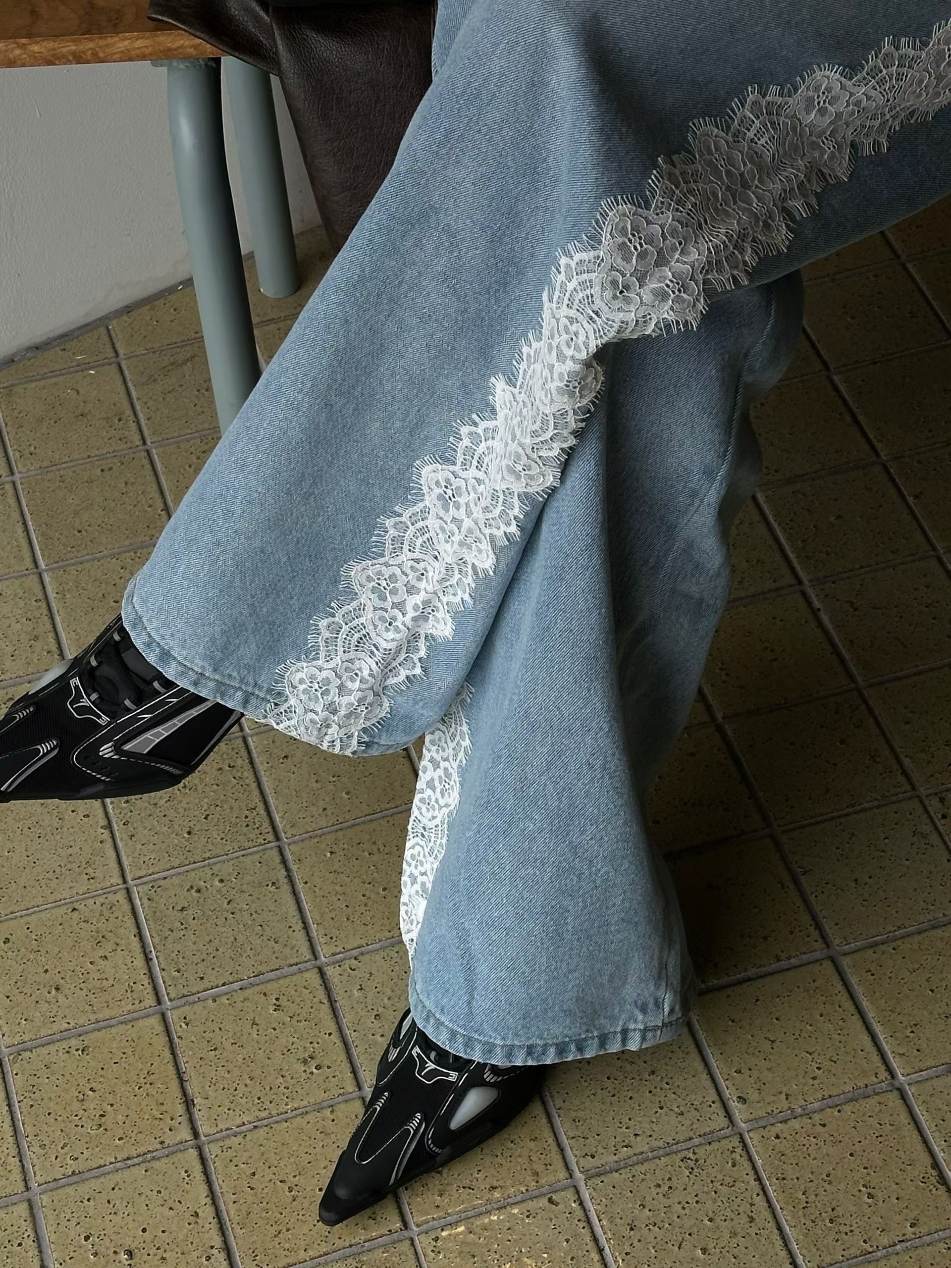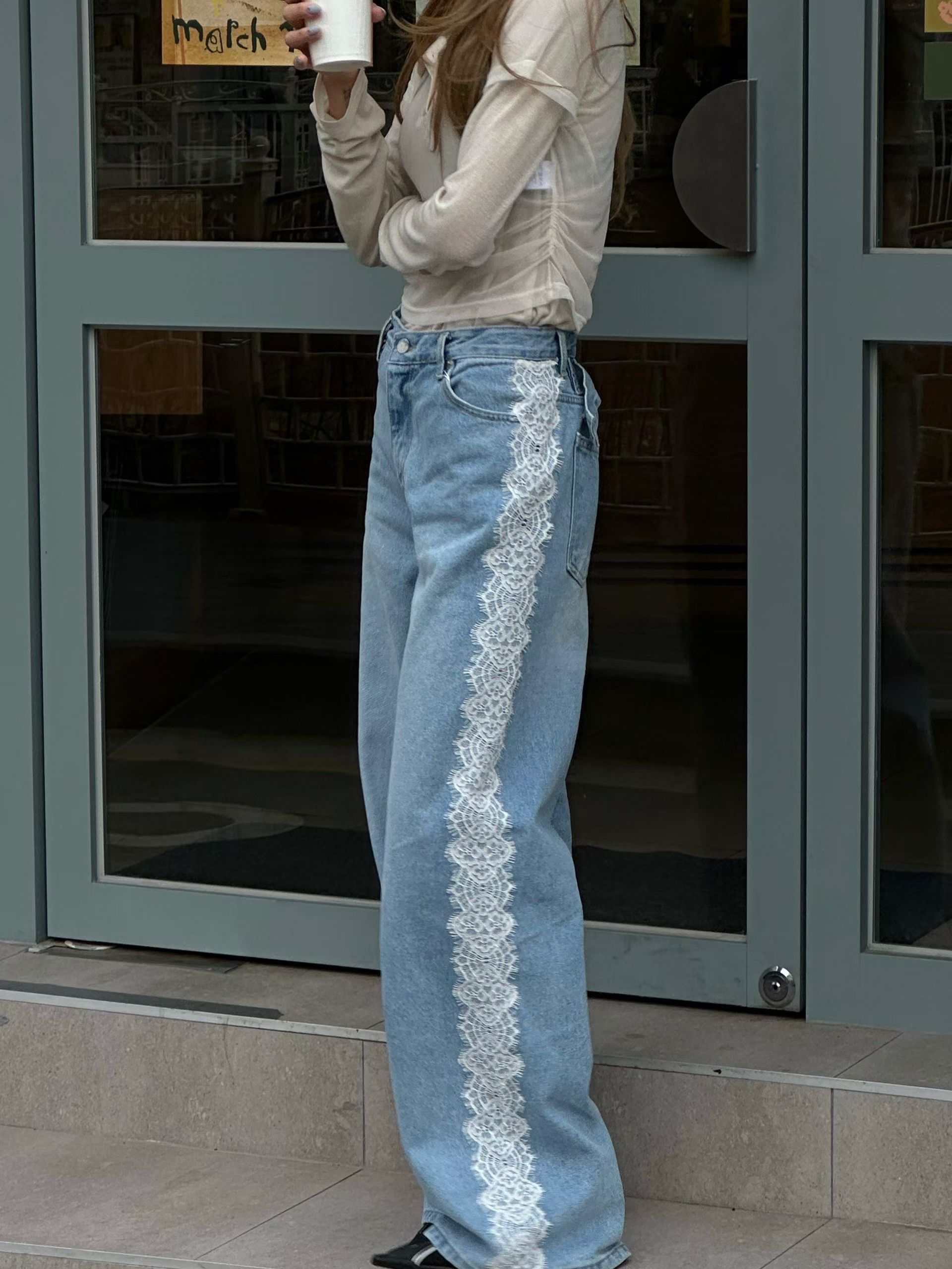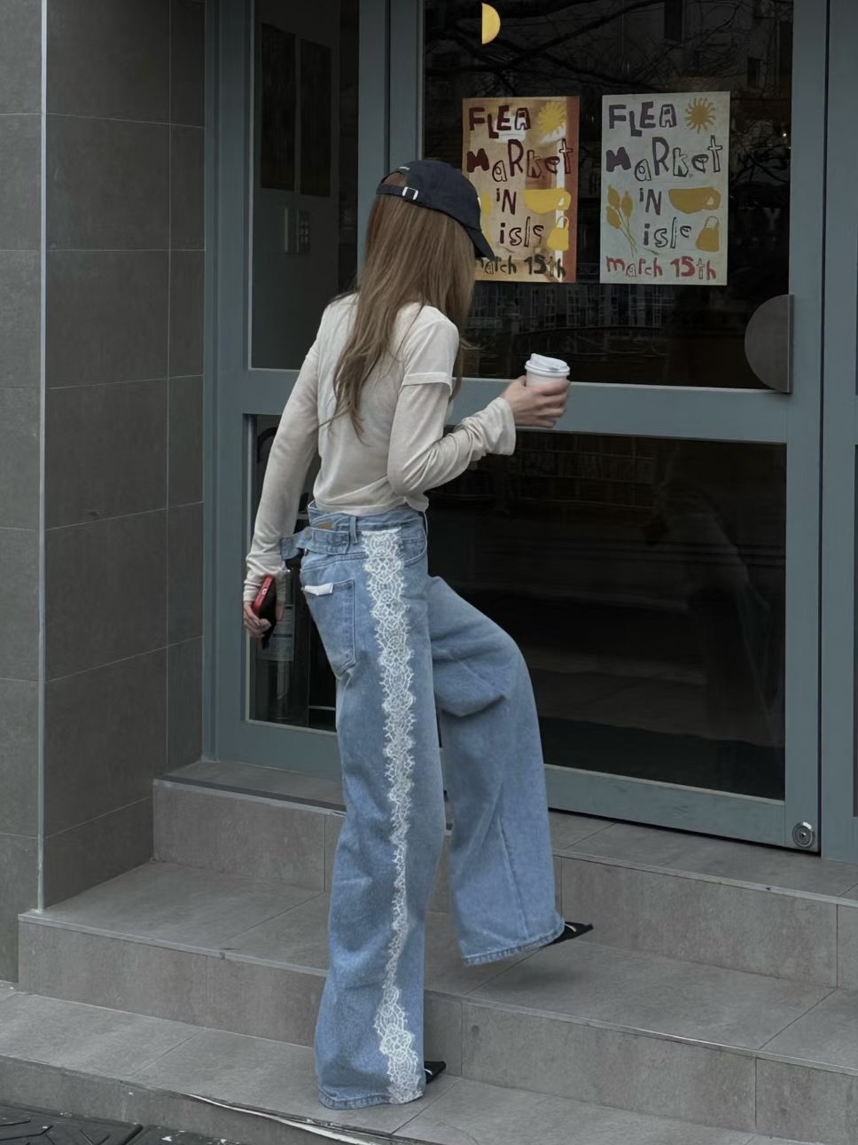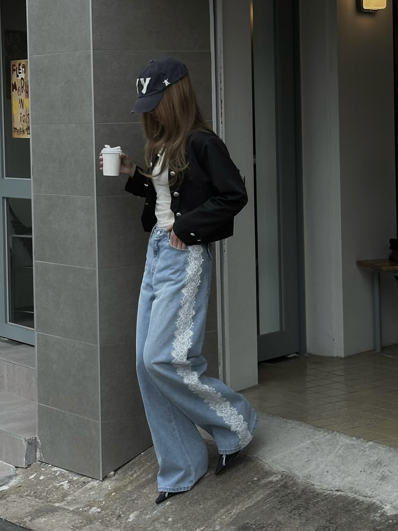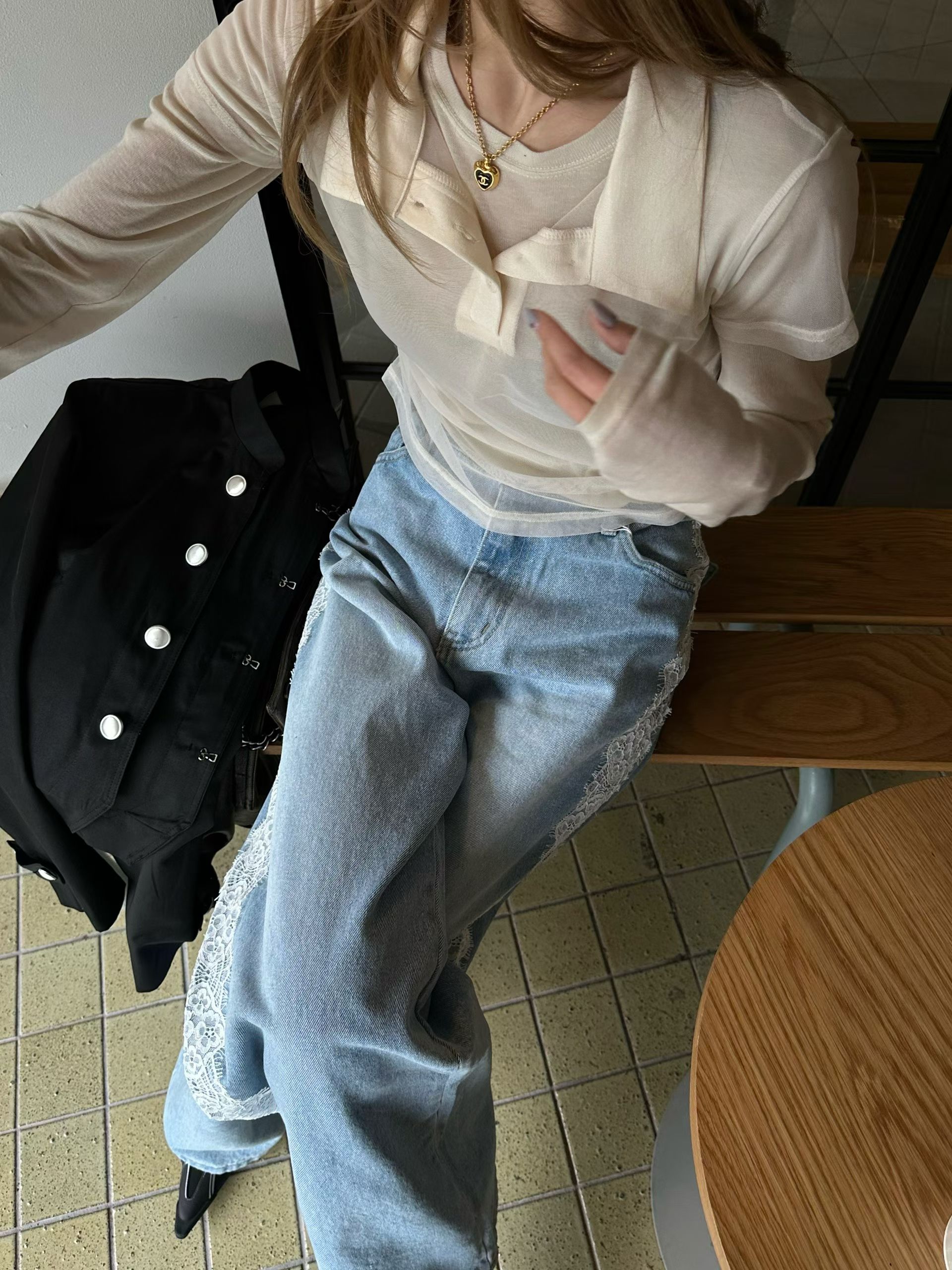 刷色好美寬鬆大反摺牛仔褲 S/M