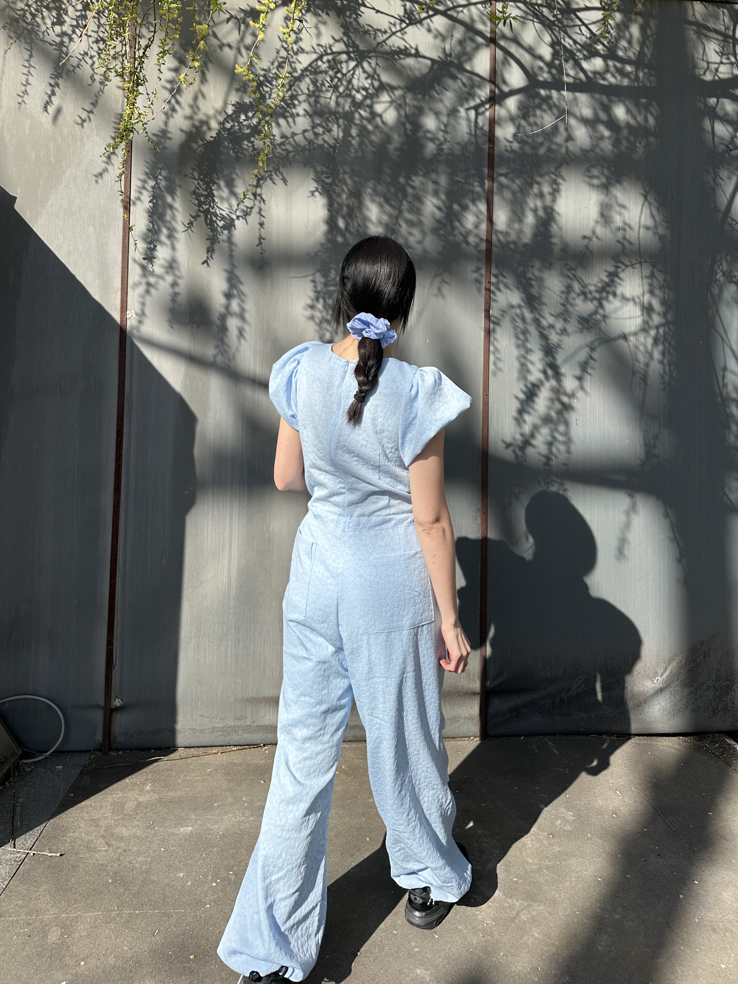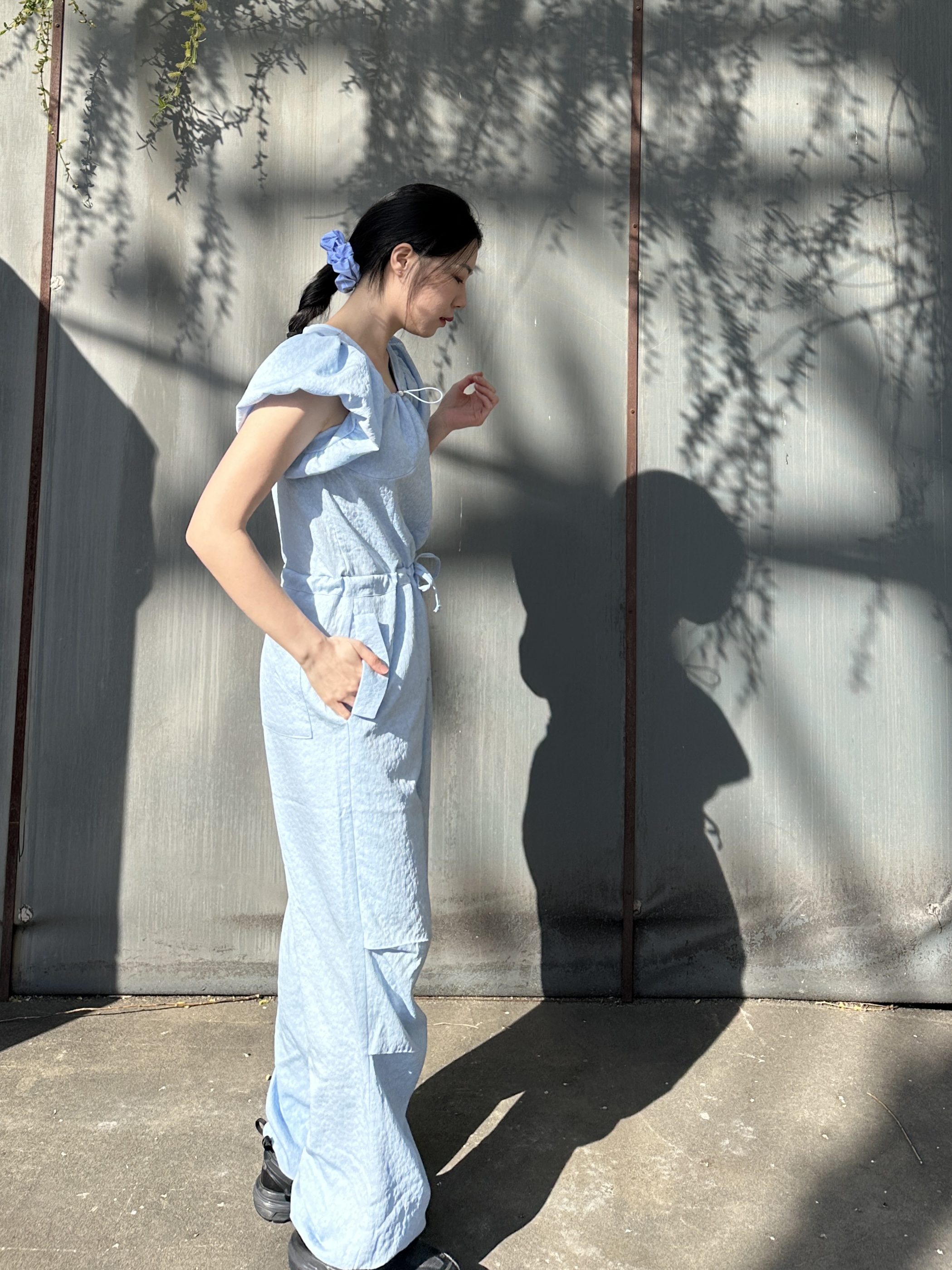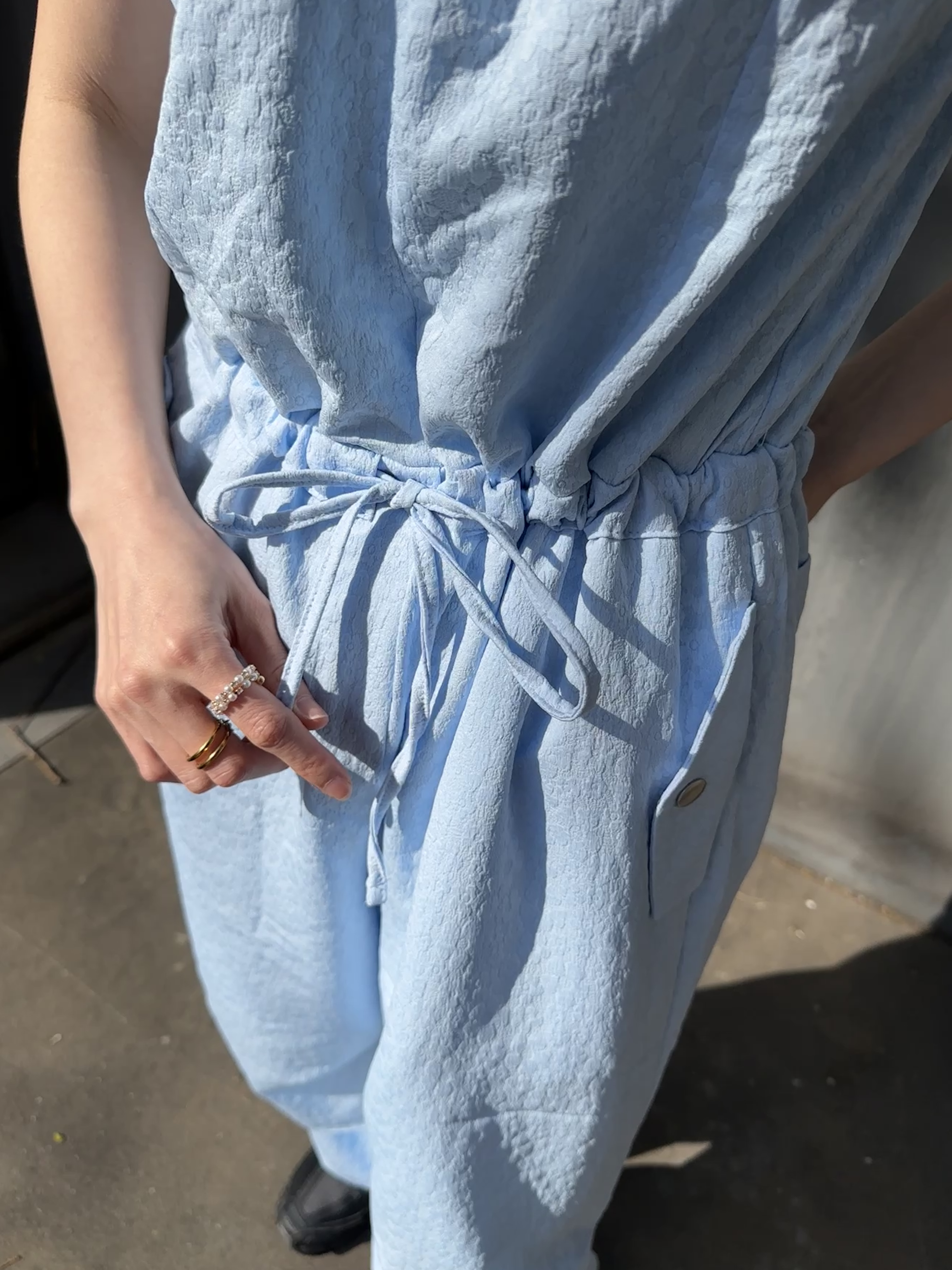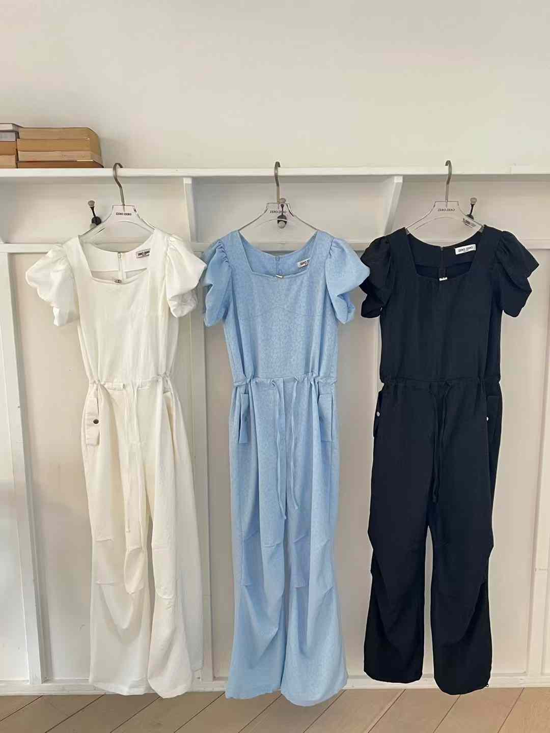 出遊必備花苞袖緹花連身褲(子珊同款)