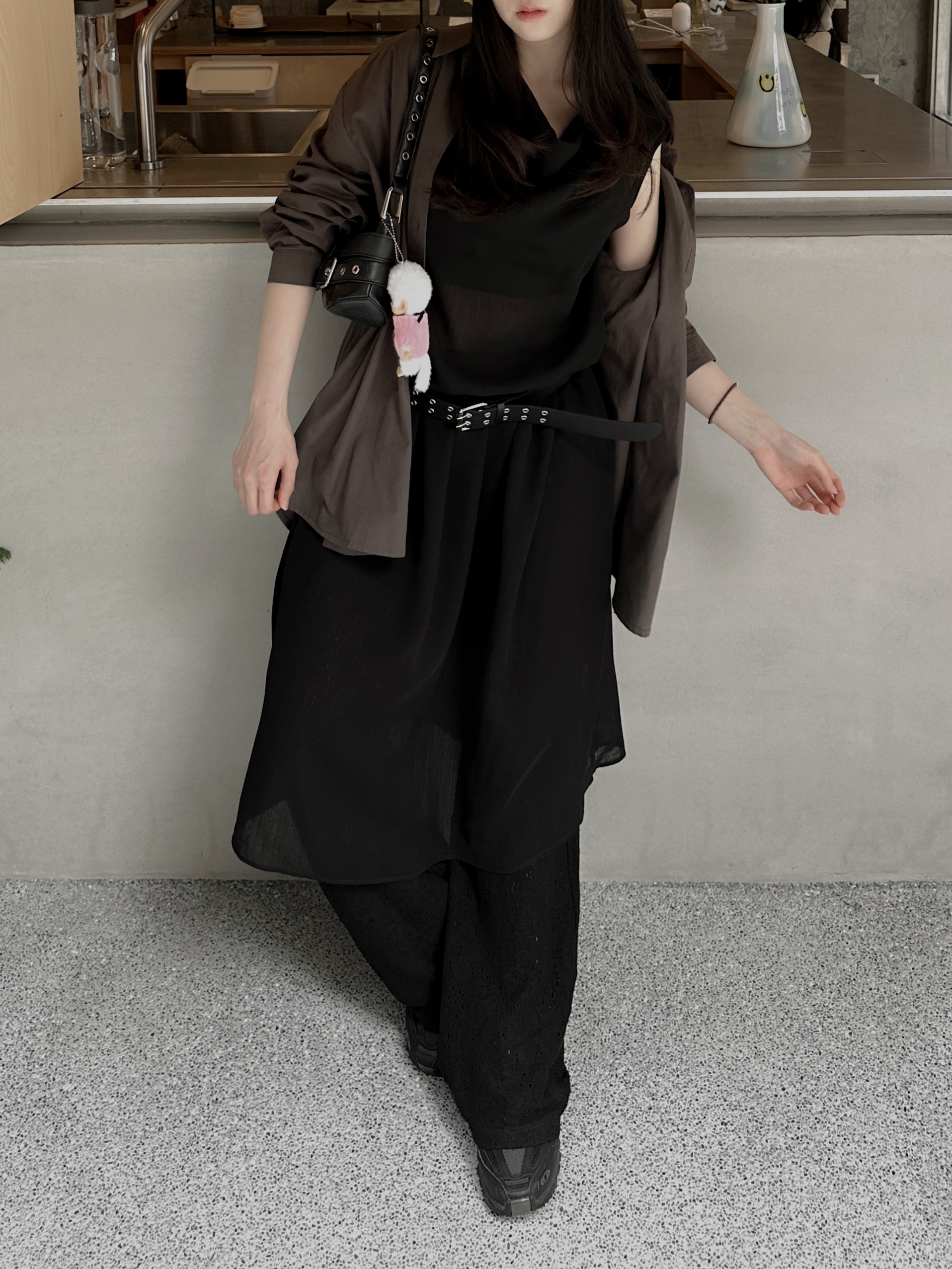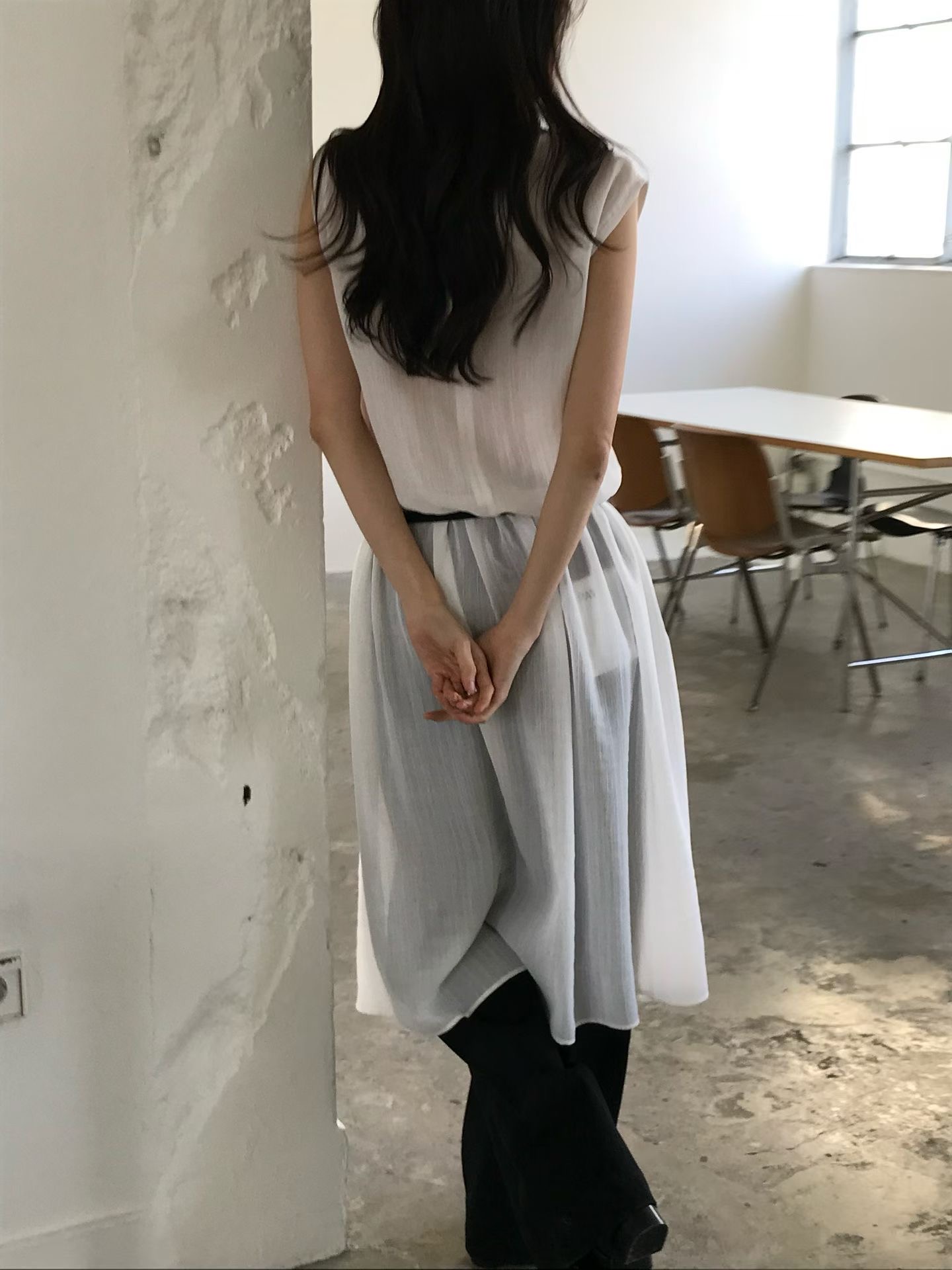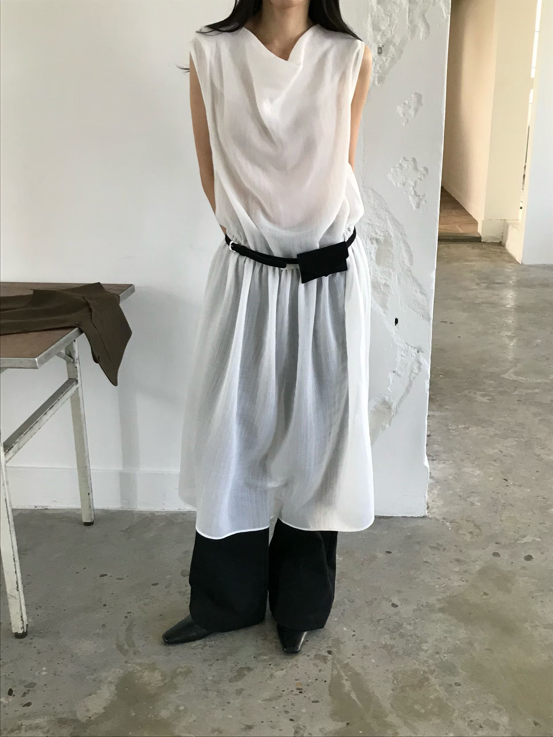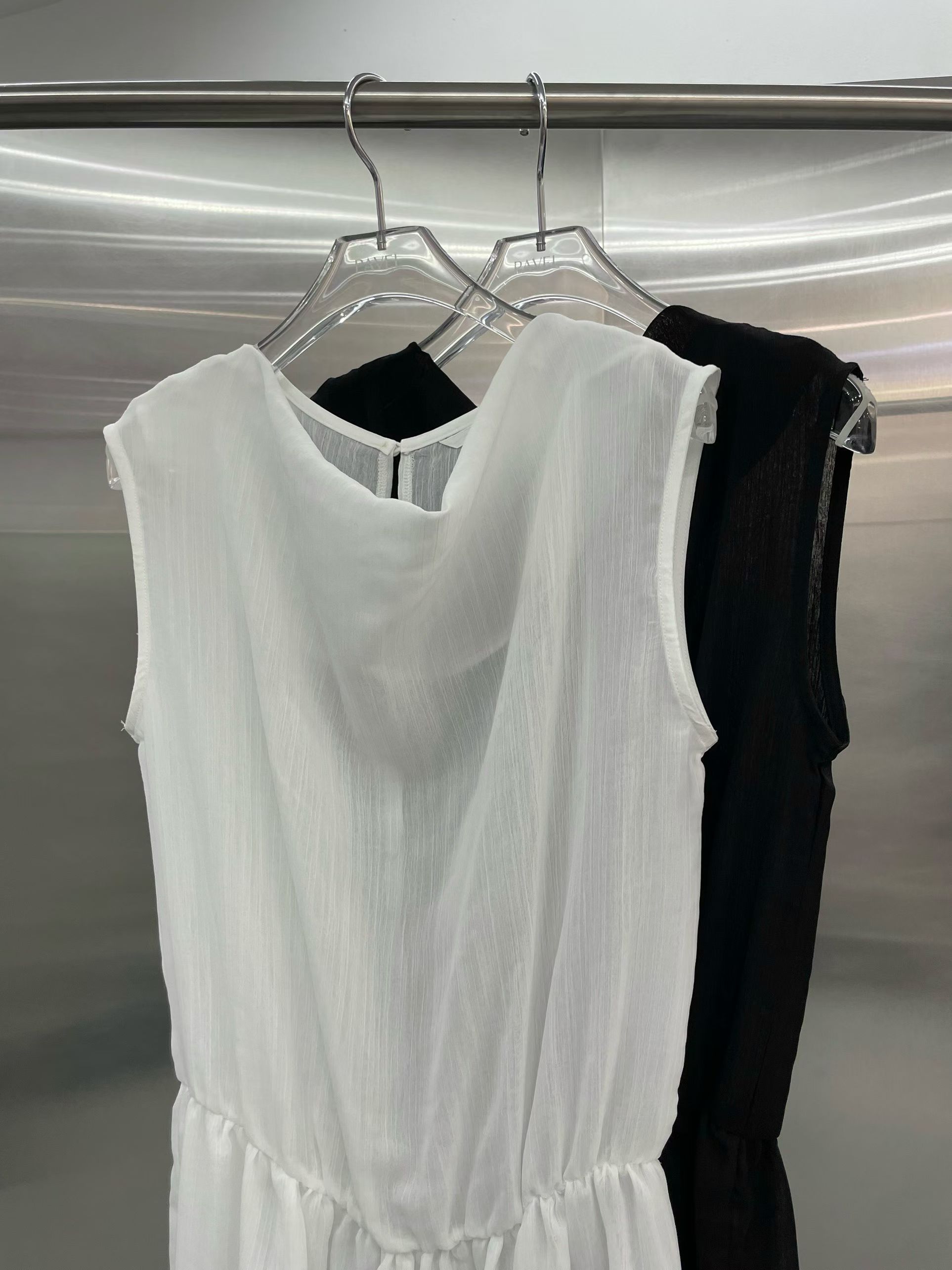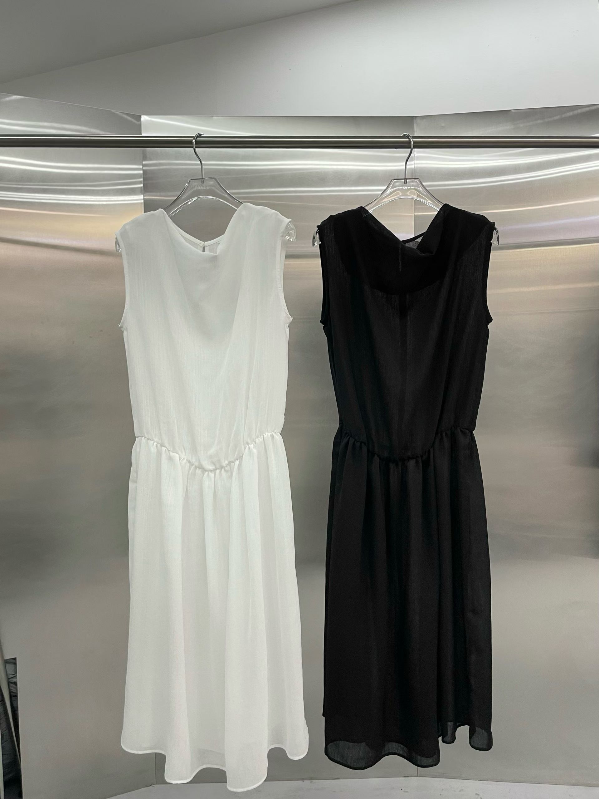 垂墜領口透膚背心洋裝