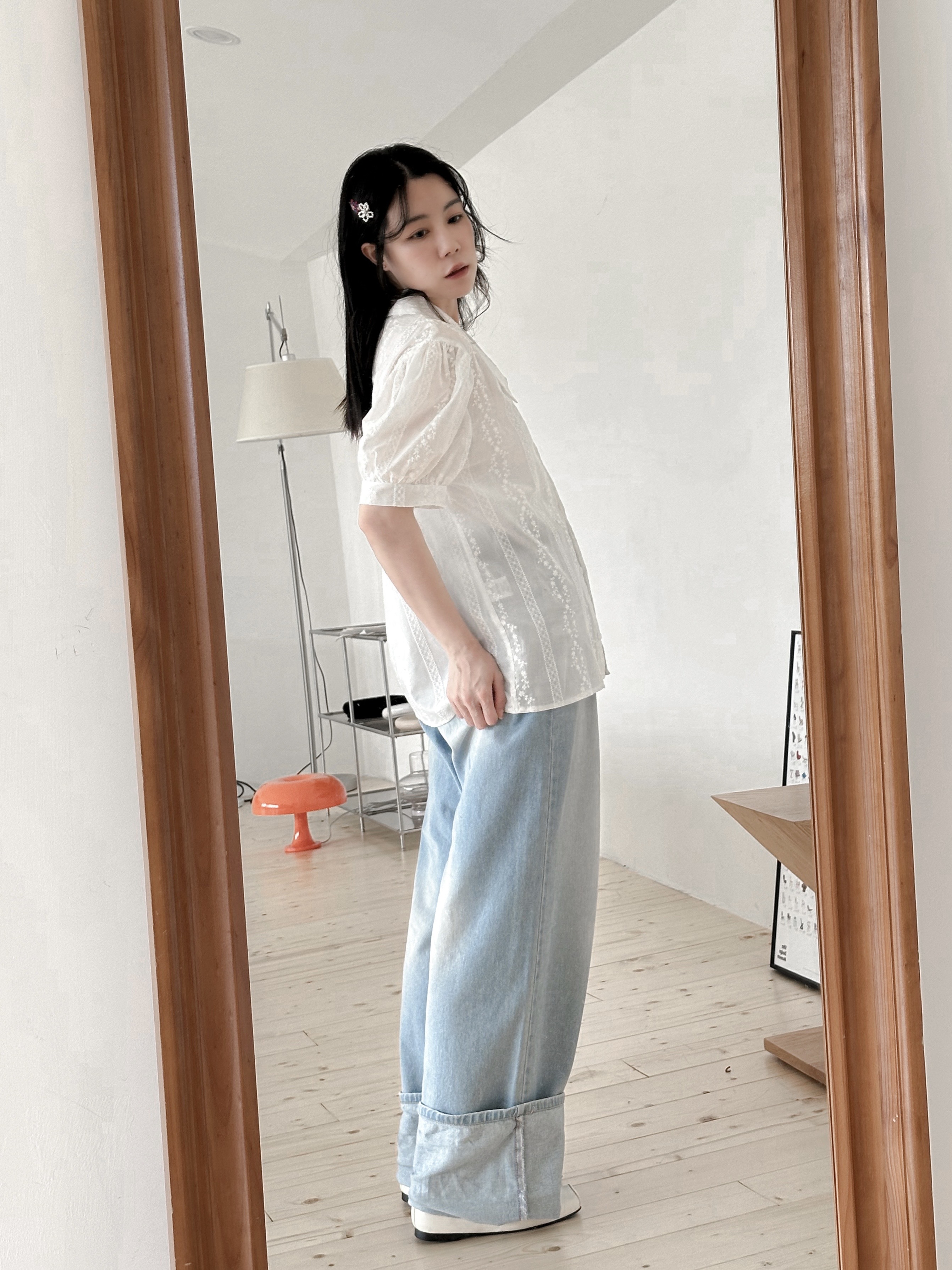 條紋配襯小吊環七分棉褲(咩冷同款)