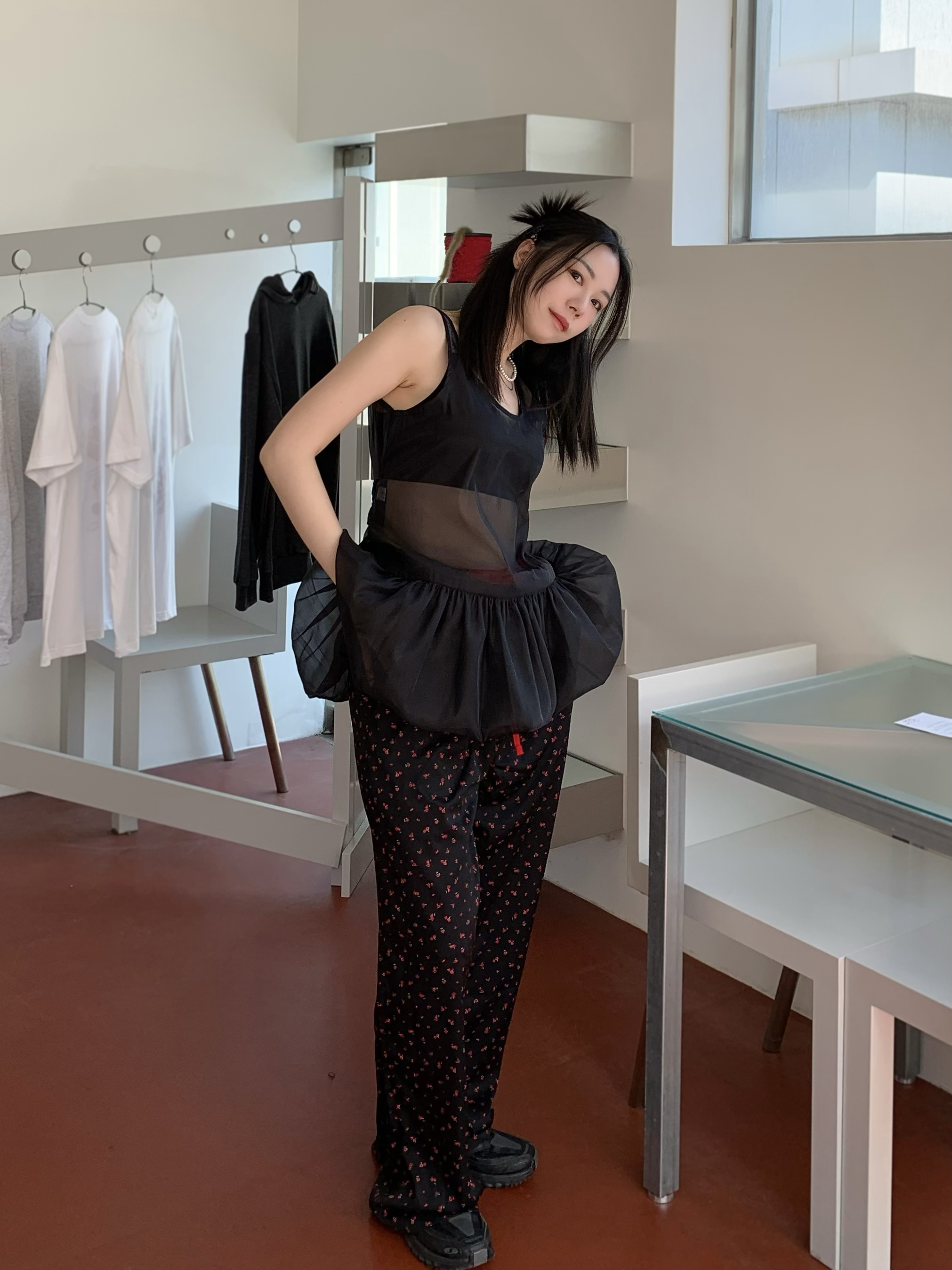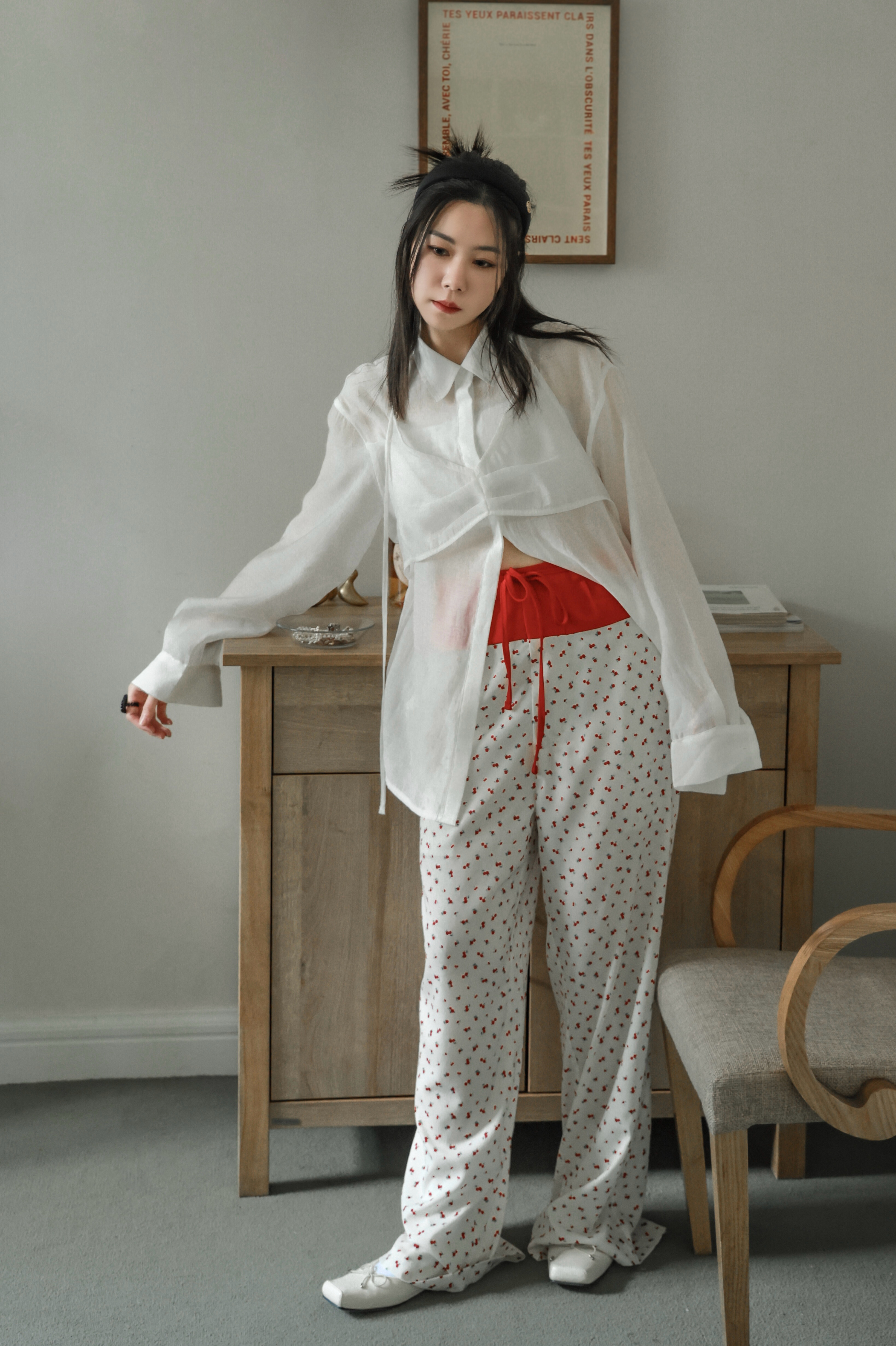 小紅花配紅色腰頭真是美翻