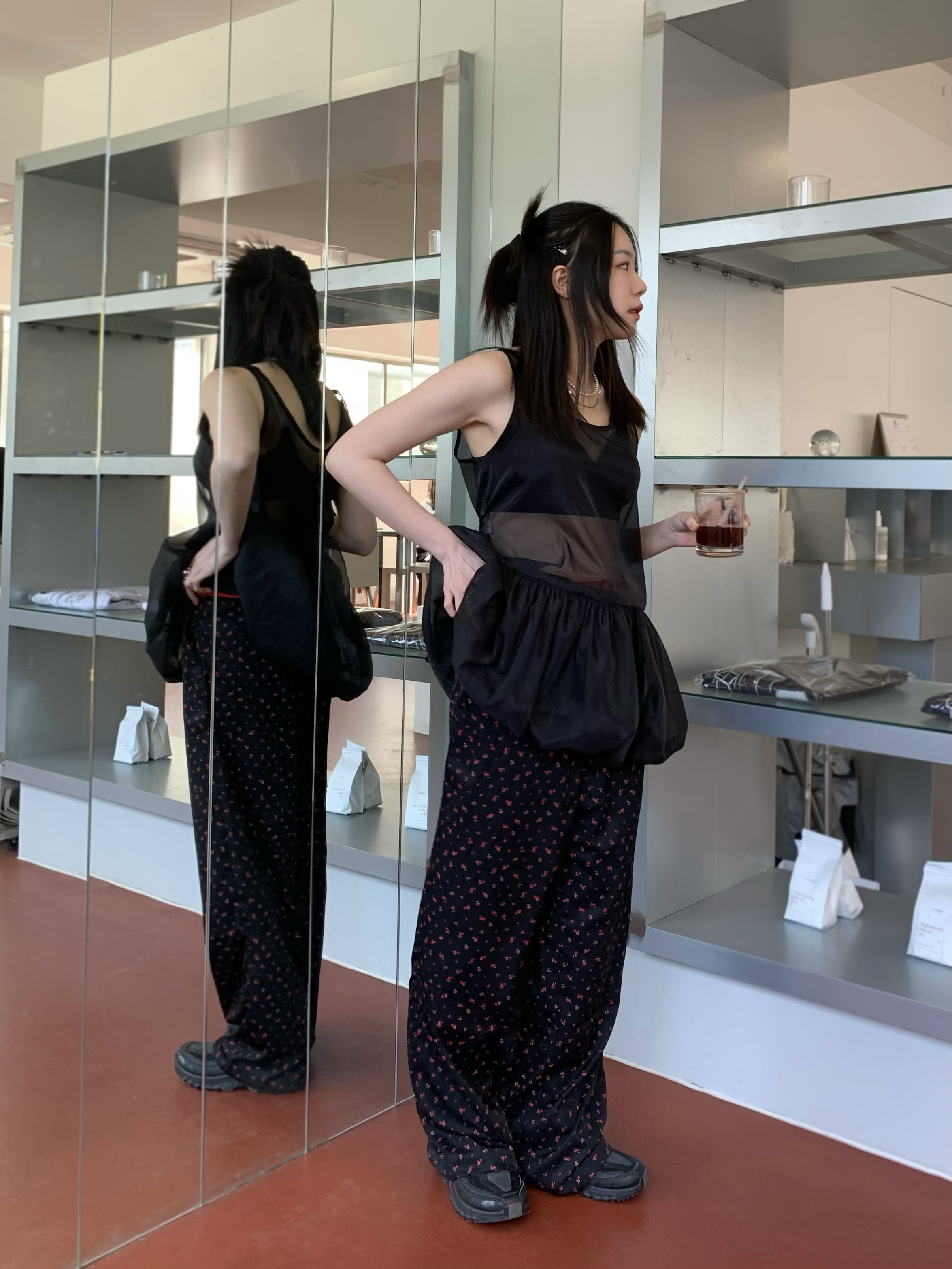 時髦派鬆緊腰小花苞裙