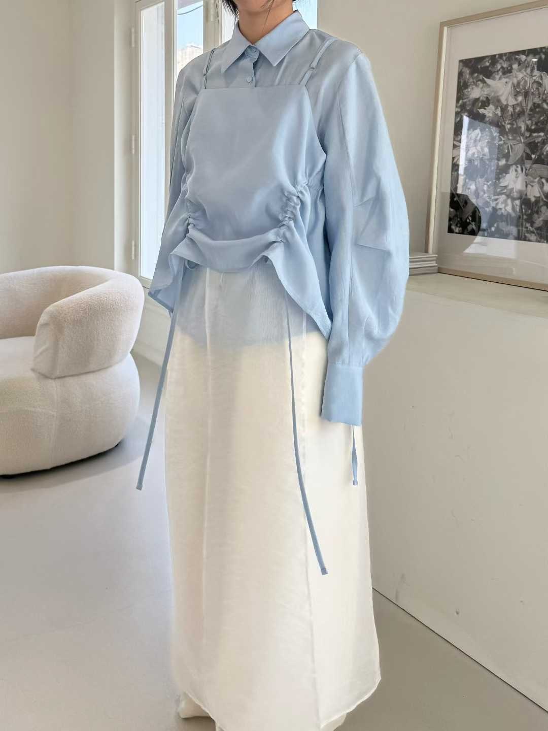 緞面高級感襯衫短裙套裝