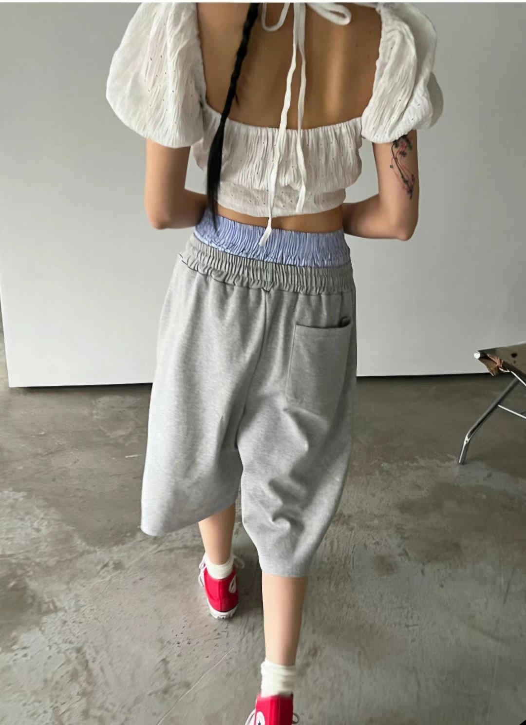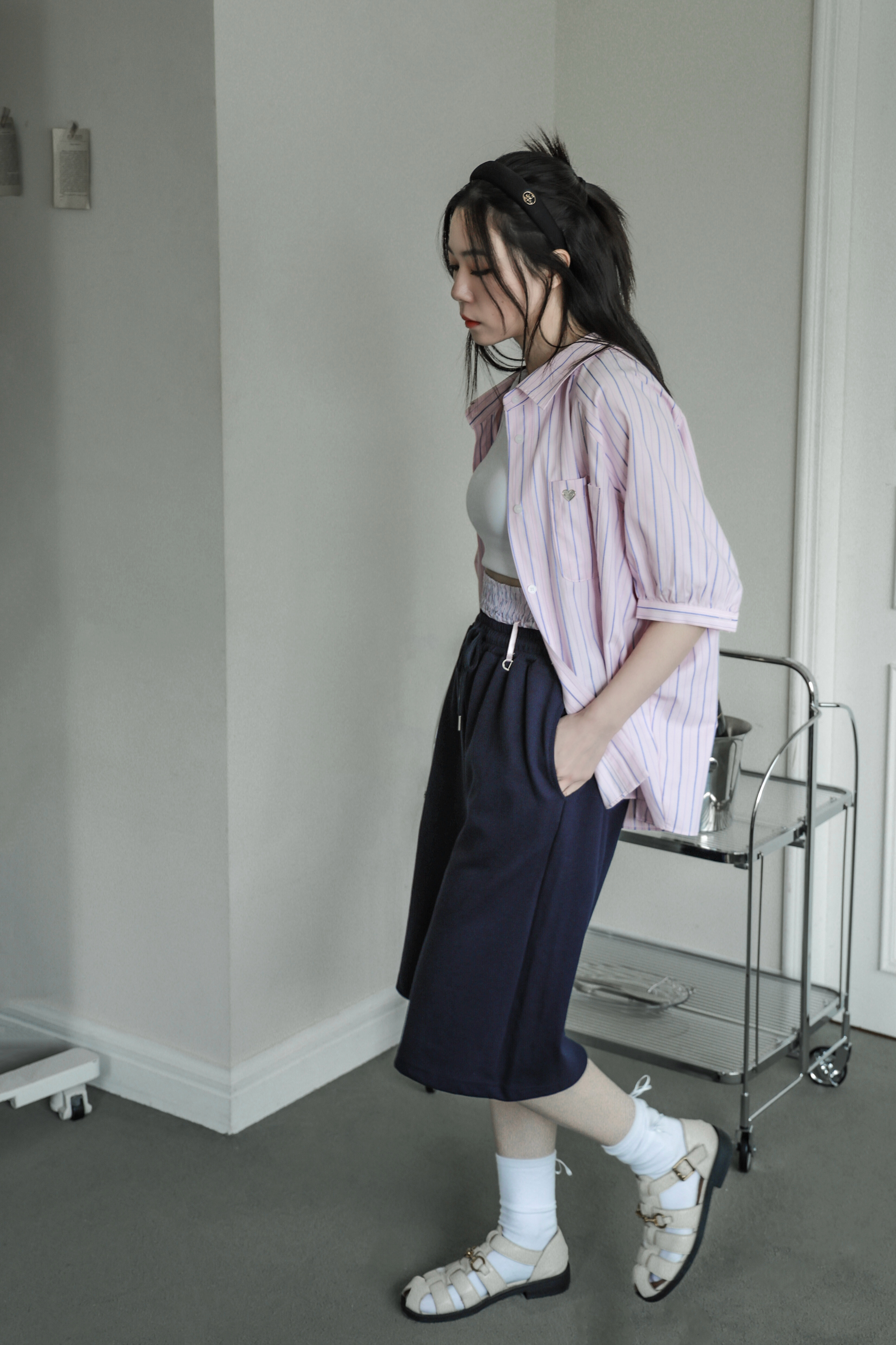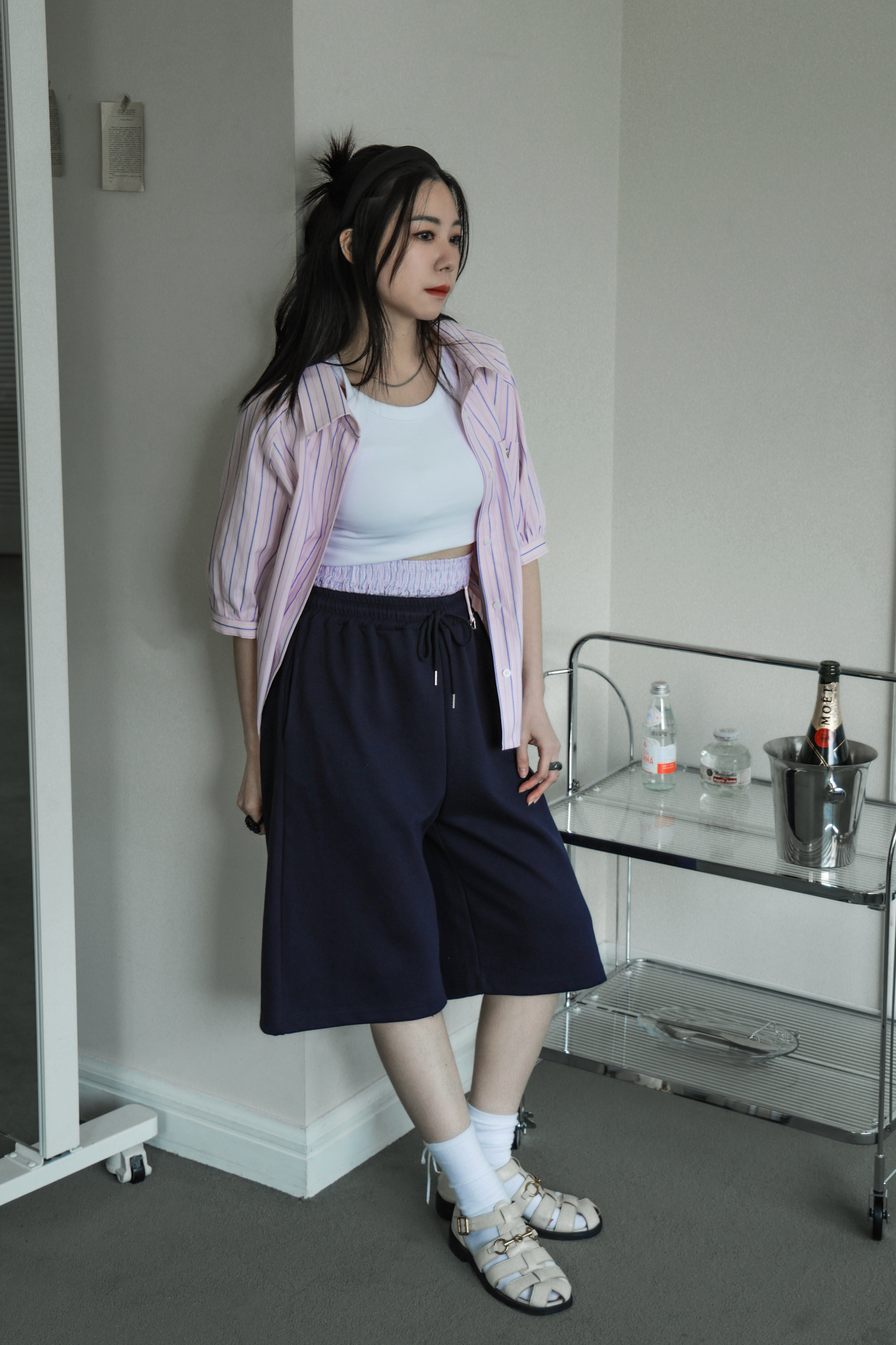 條紋配襯小吊環七分棉褲(咩冷同款)