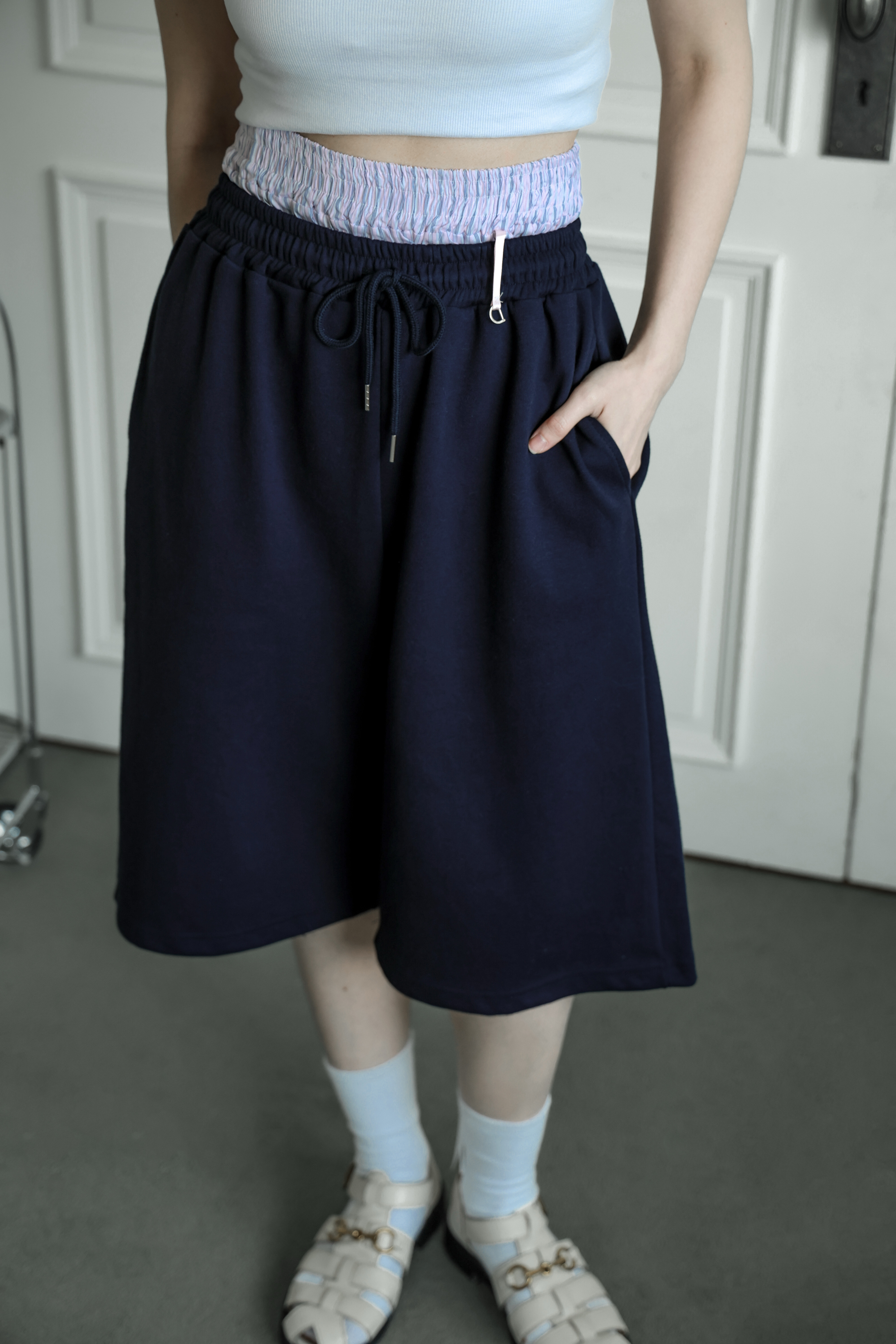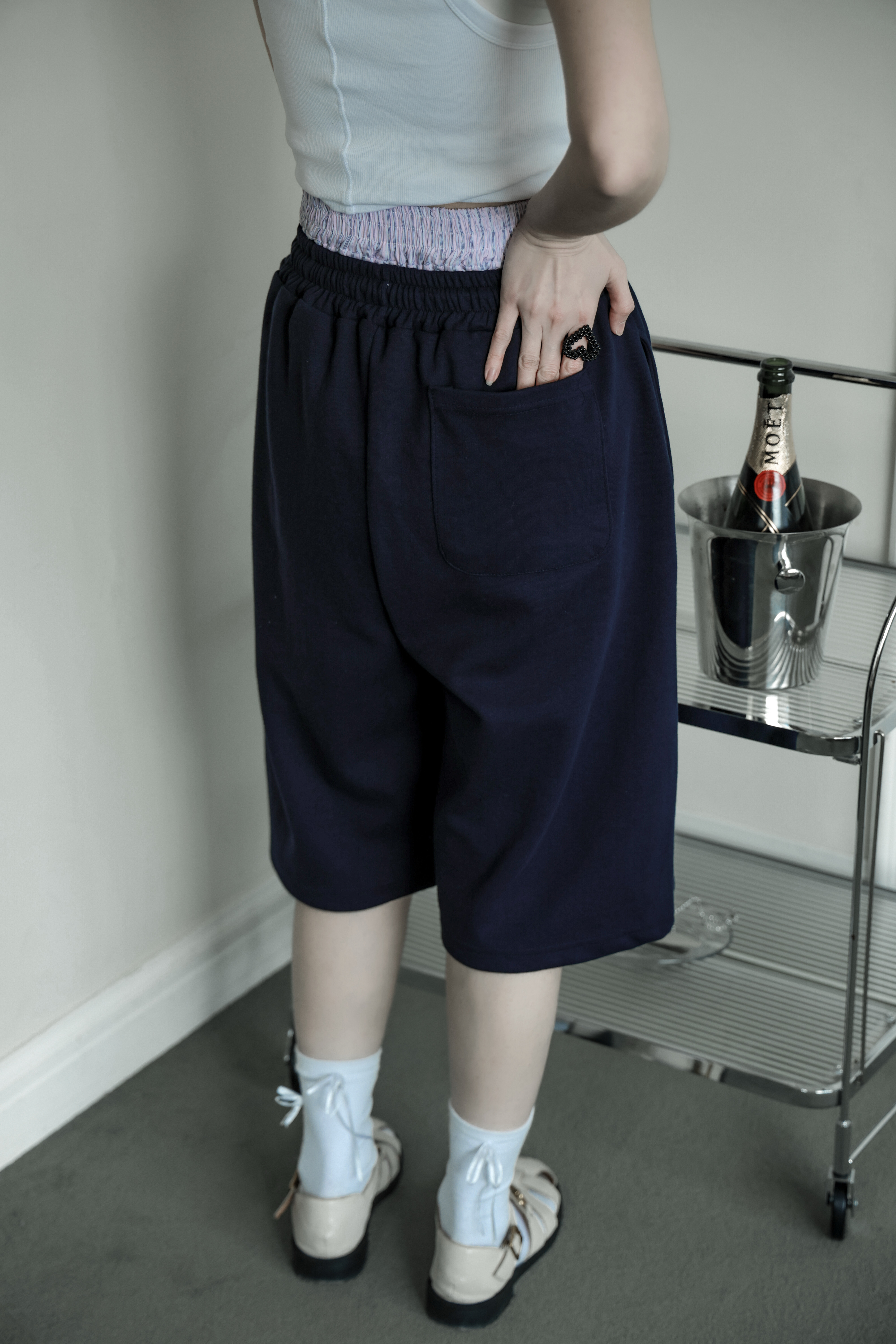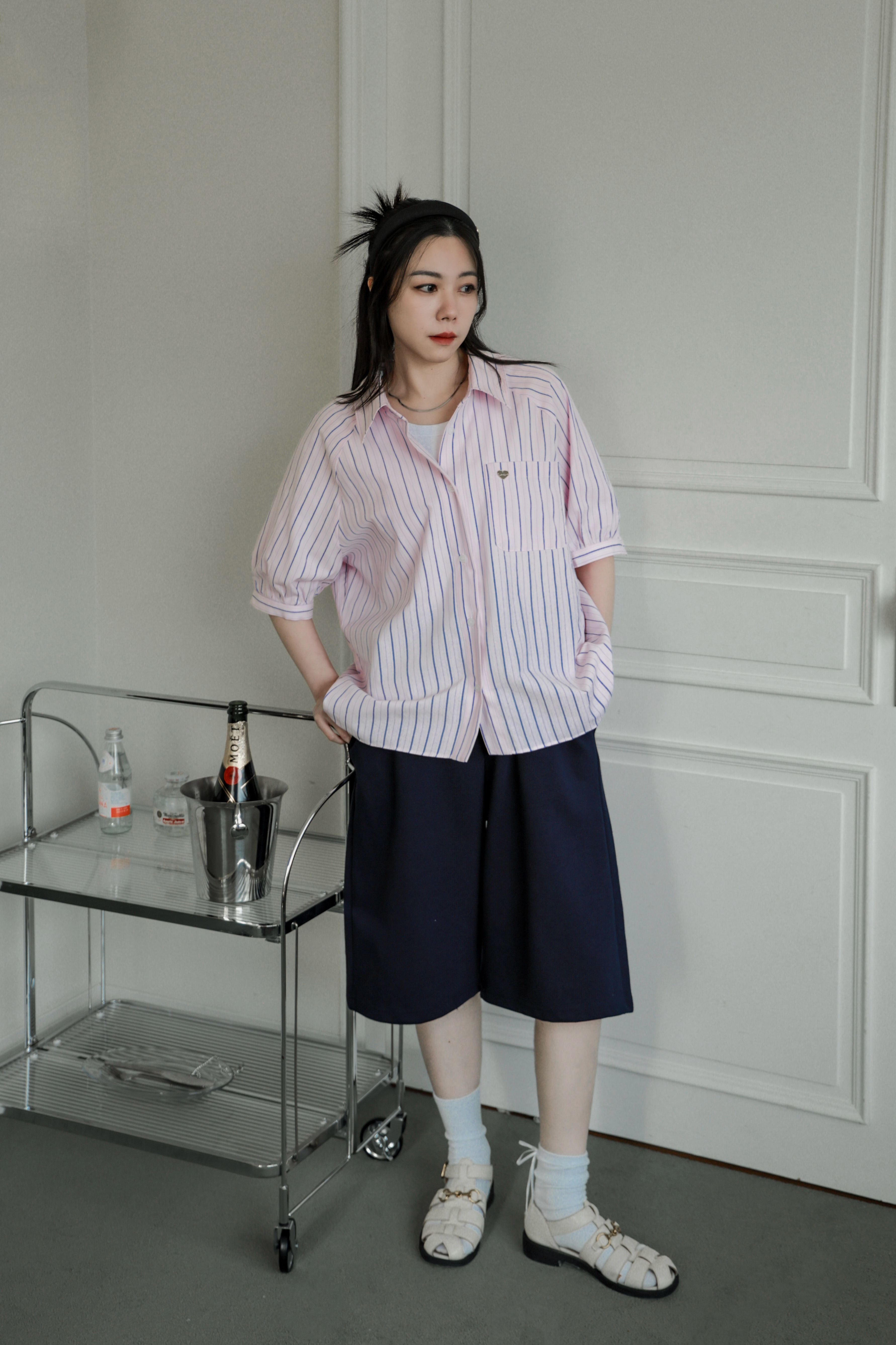 條紋配襯小吊環七分棉褲(咩冷同款)