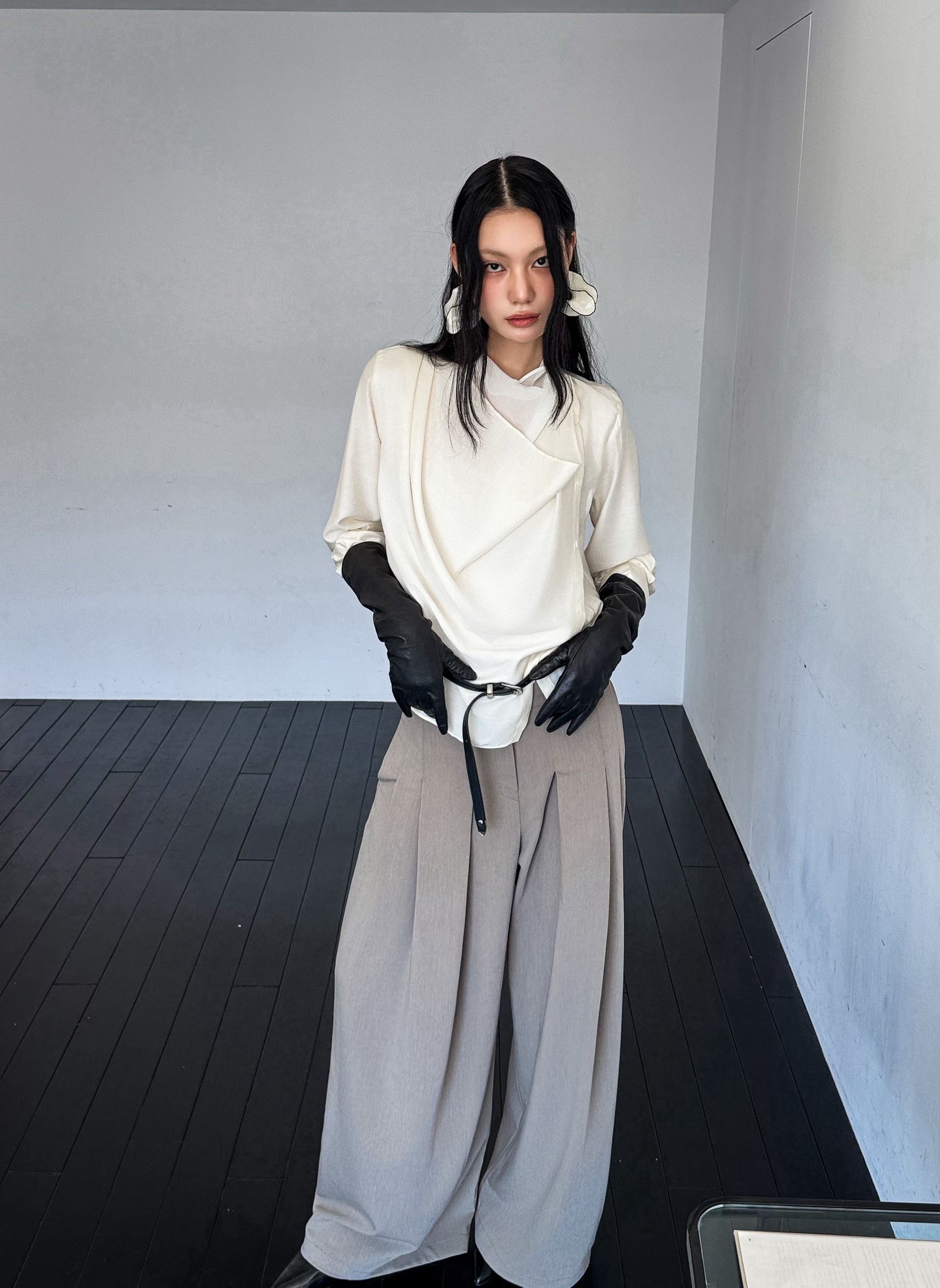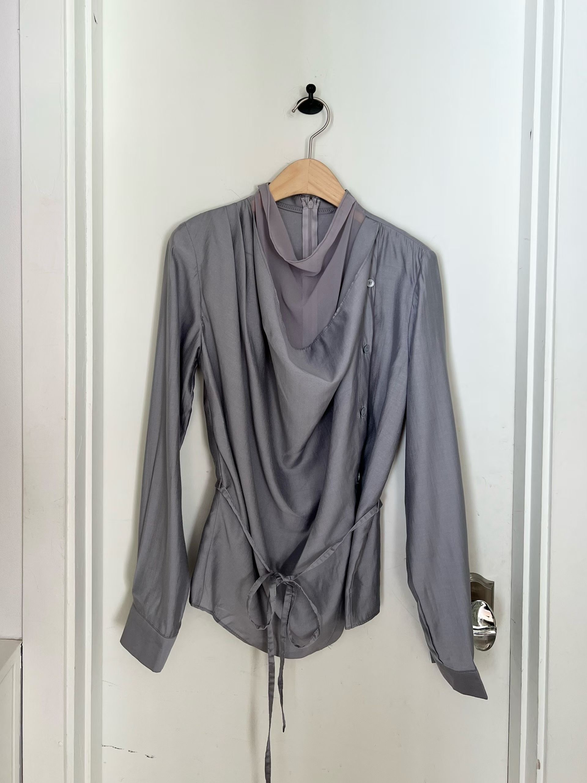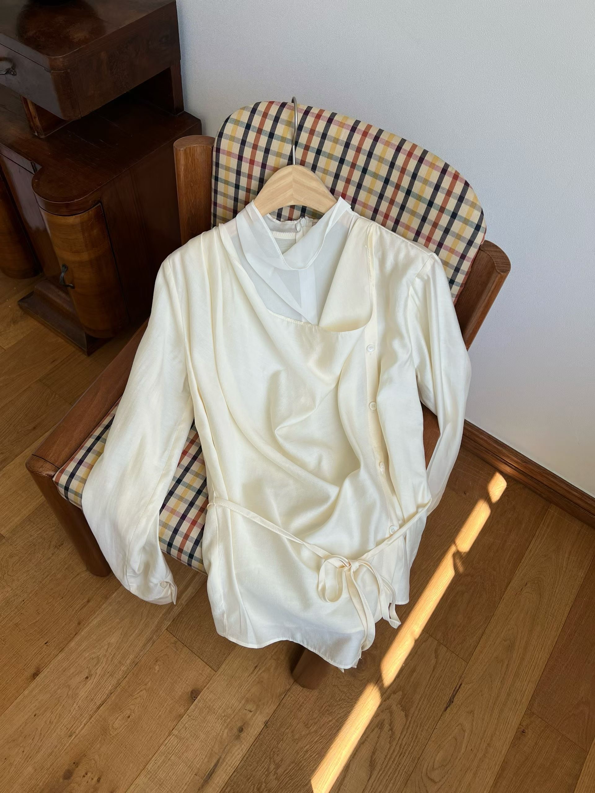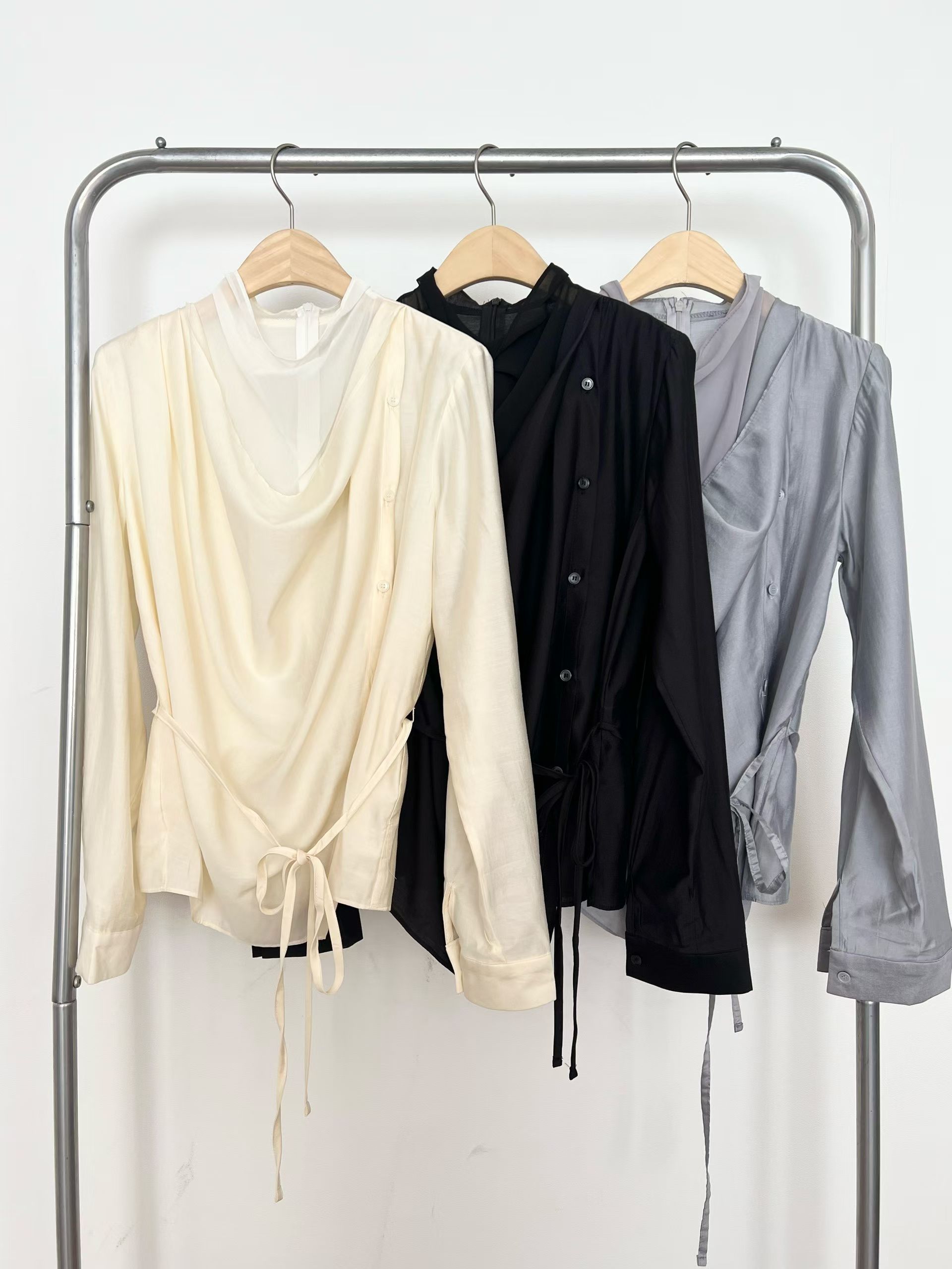 疊加領垂墜排扣附綁帶襯衫