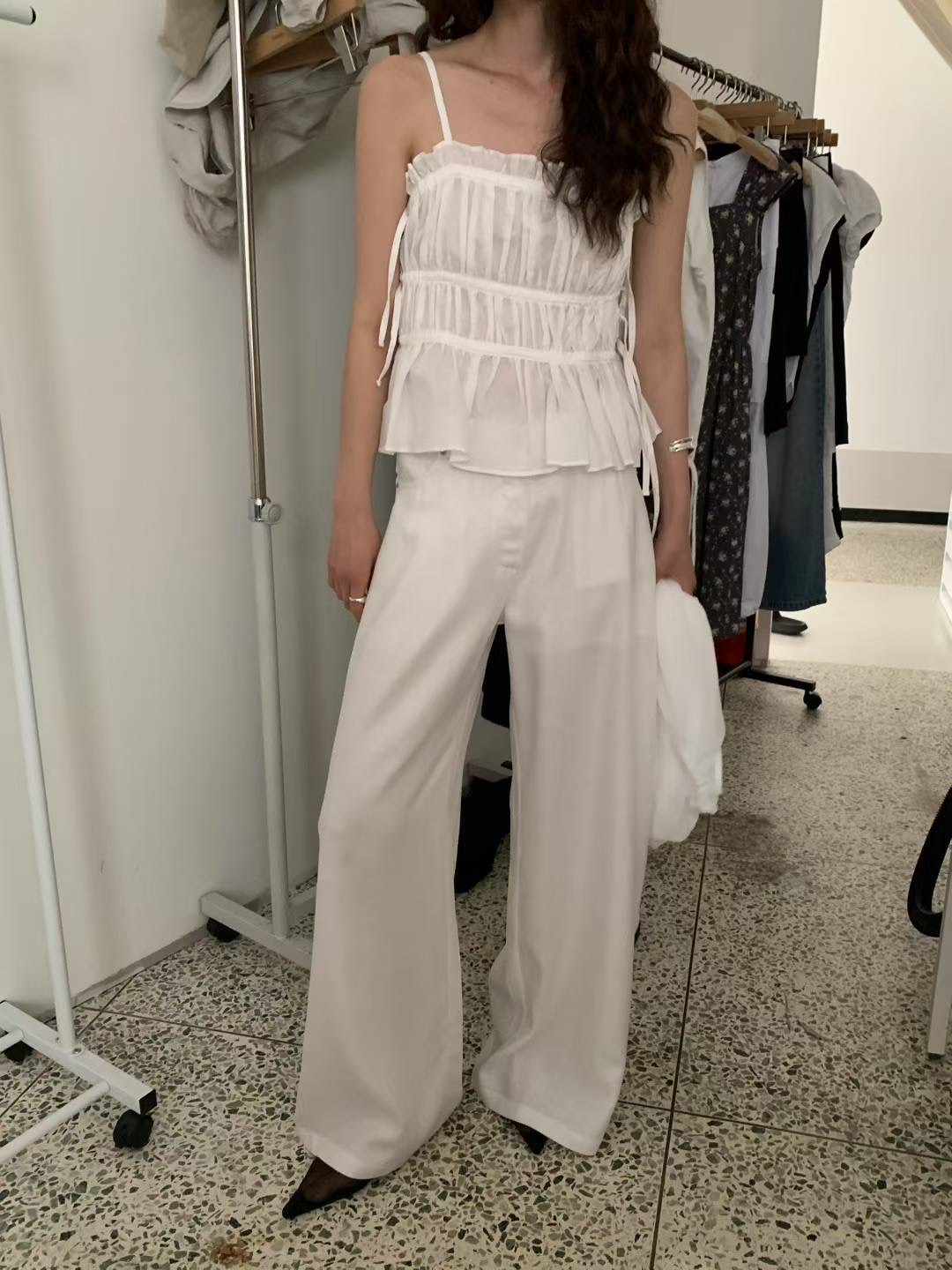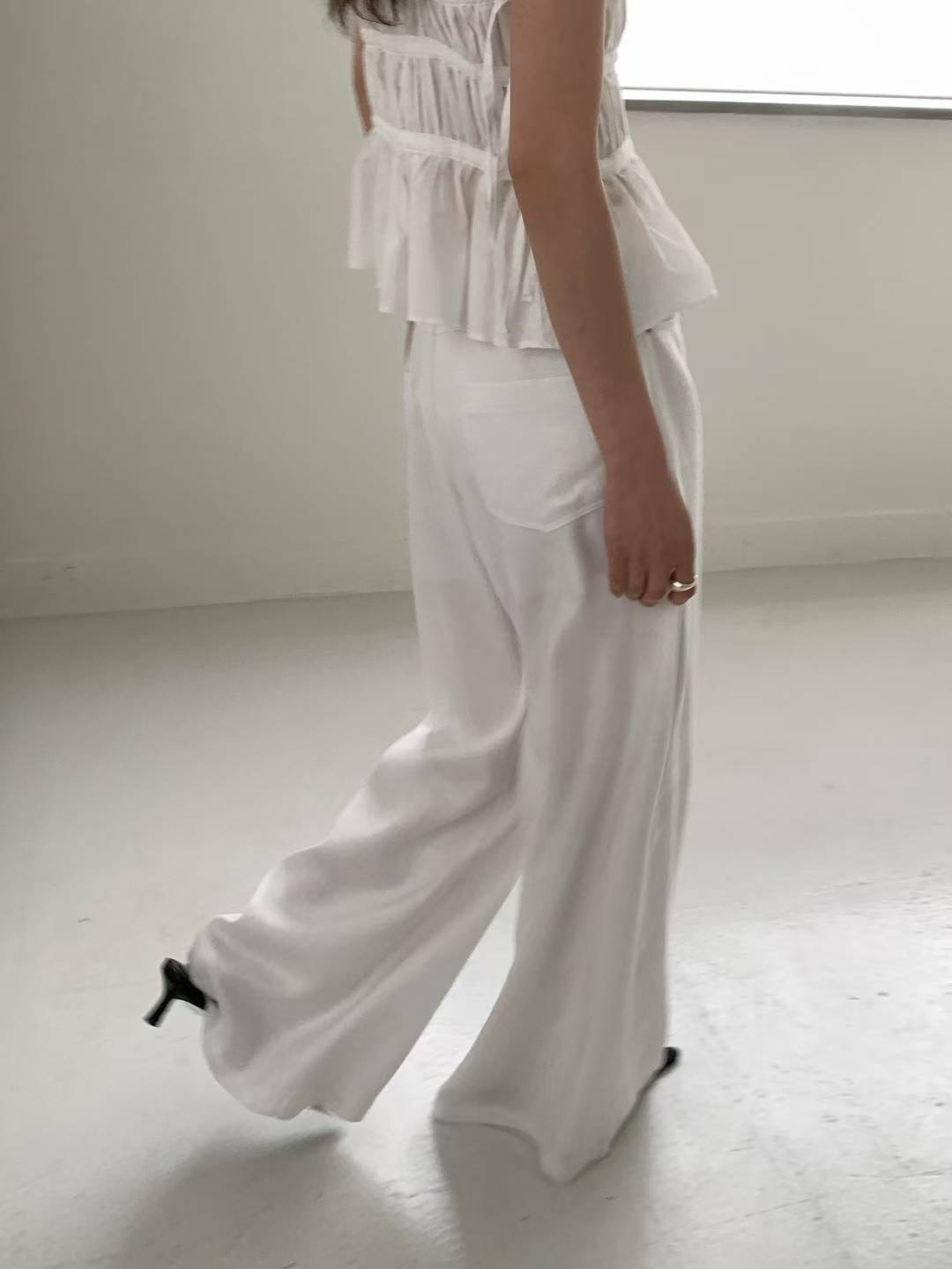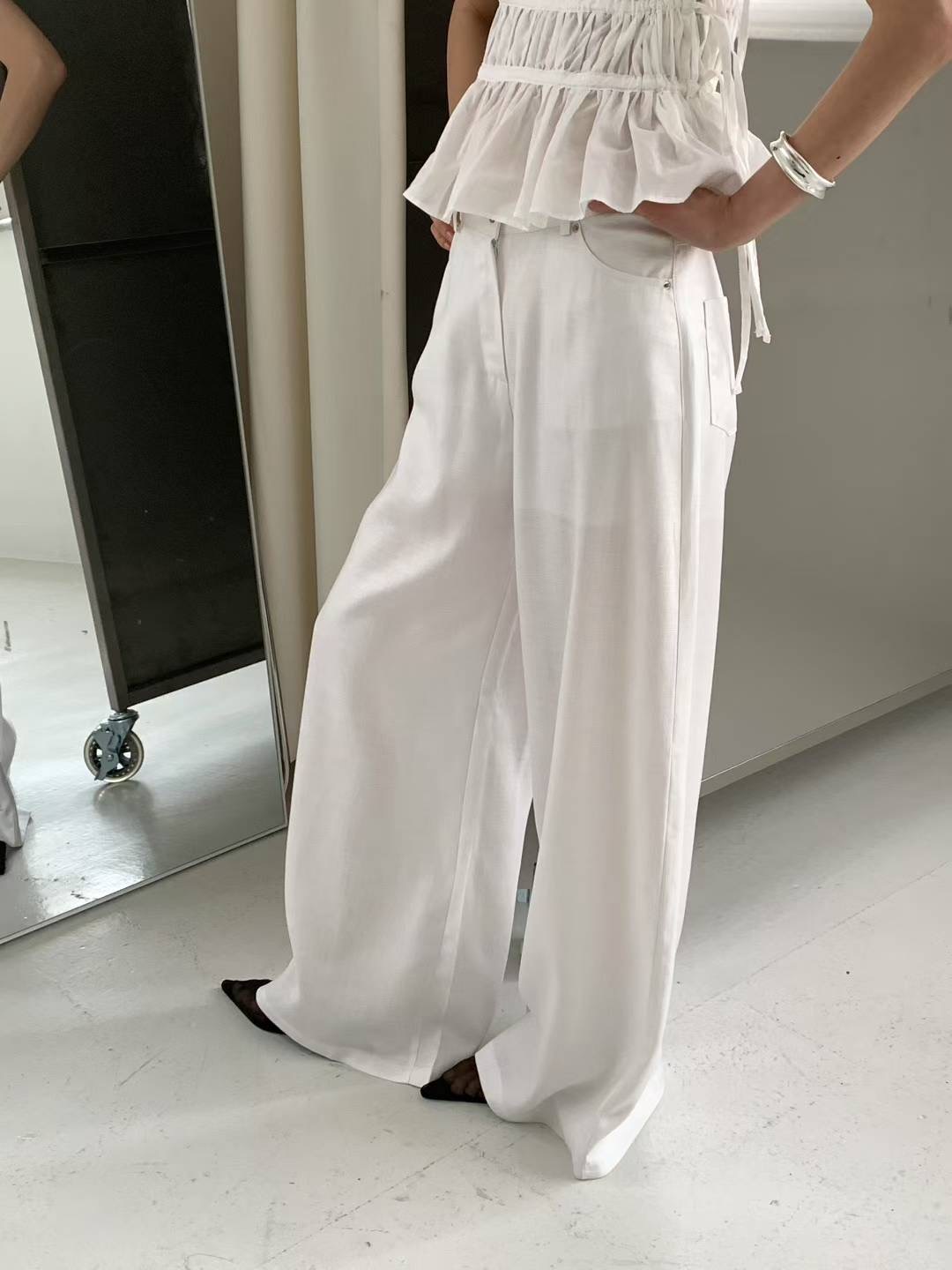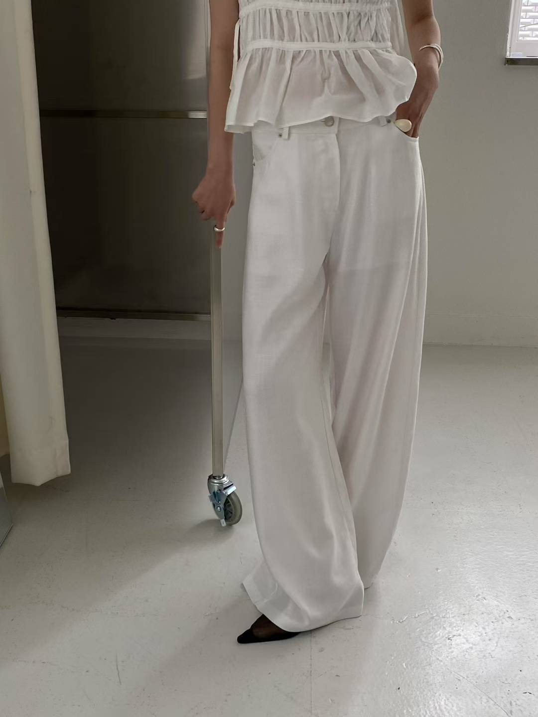 Made in Korea白色較透有內裡長33公分質感很細緻的棉麻完全不札皮膚-S腰圍:34 / 臀圍:46 / 全長:102褲管寬:36 / 褲襠:37M腰圍:38 / 臀圍:50 / 全長:102褲管寬:37 / 褲襠:37.5