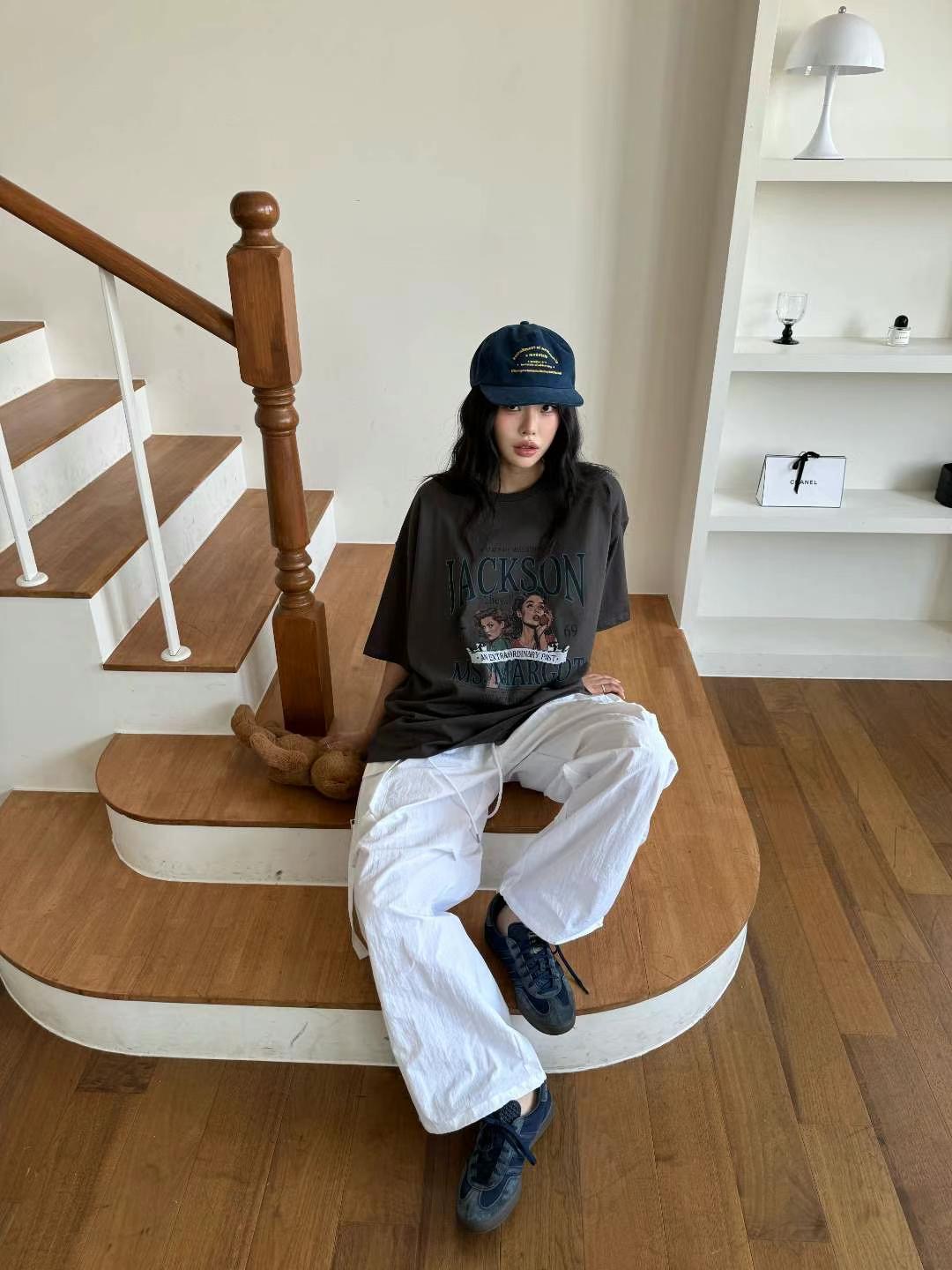 刷色好美寬鬆大反摺牛仔褲 S/M