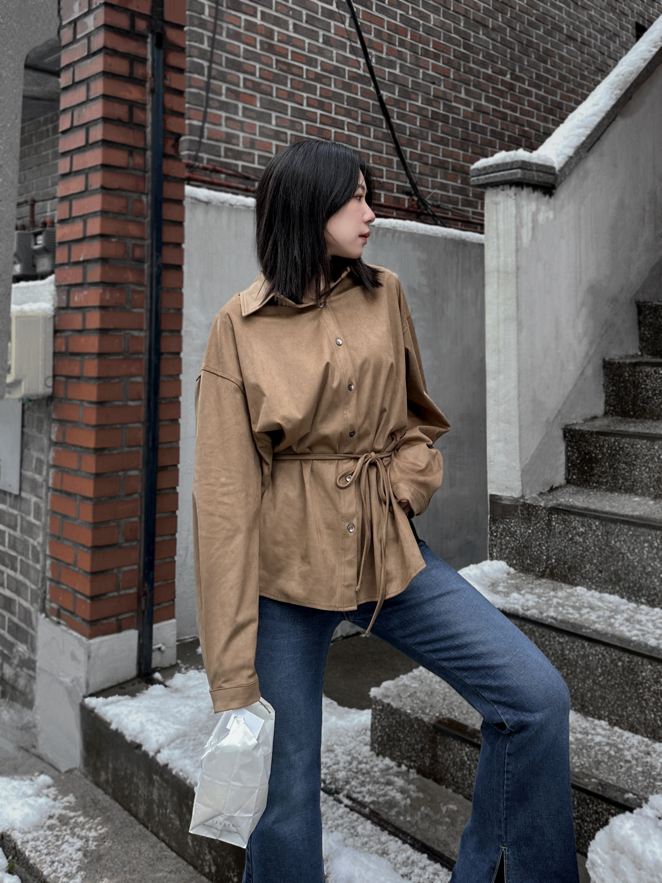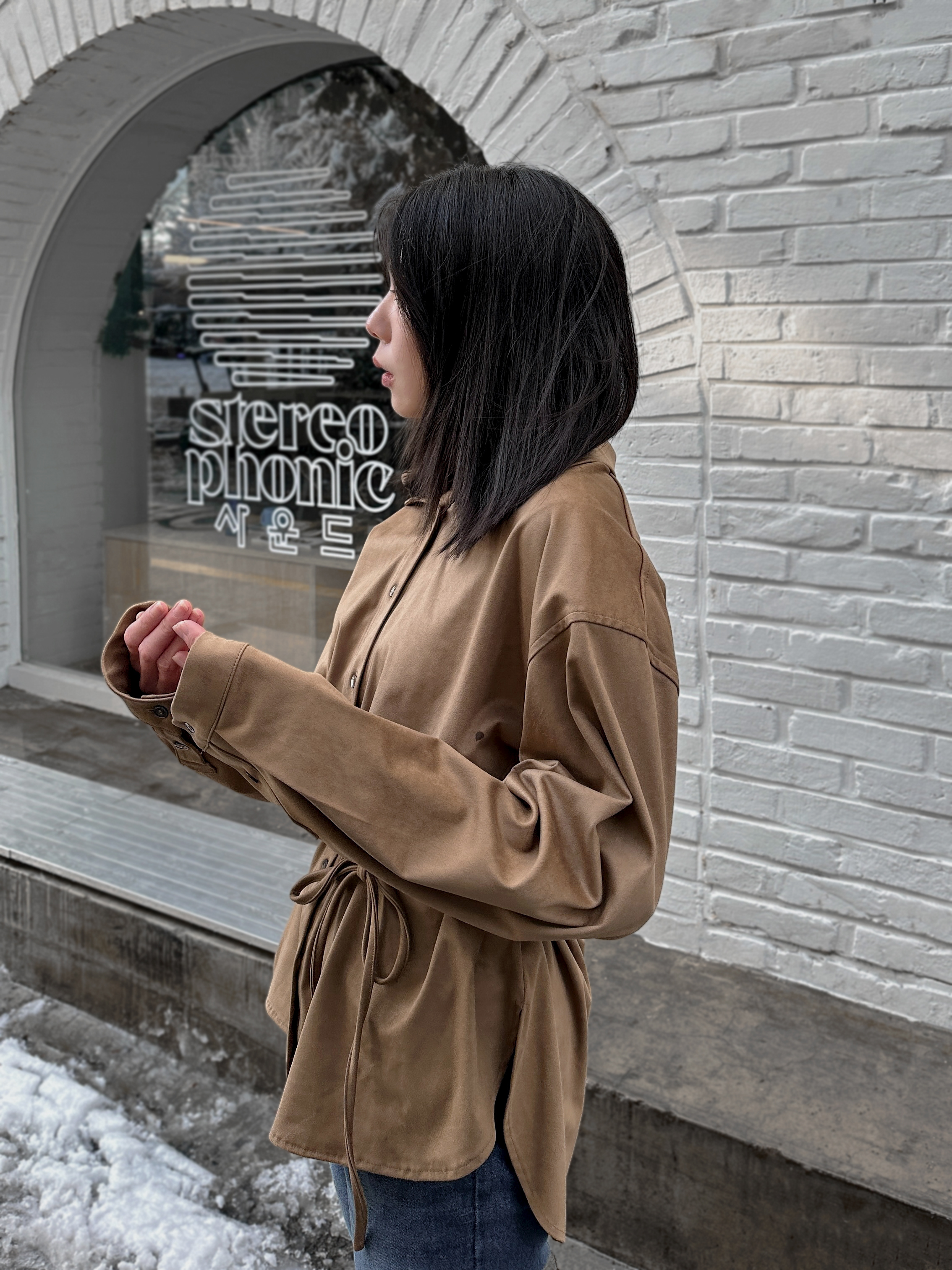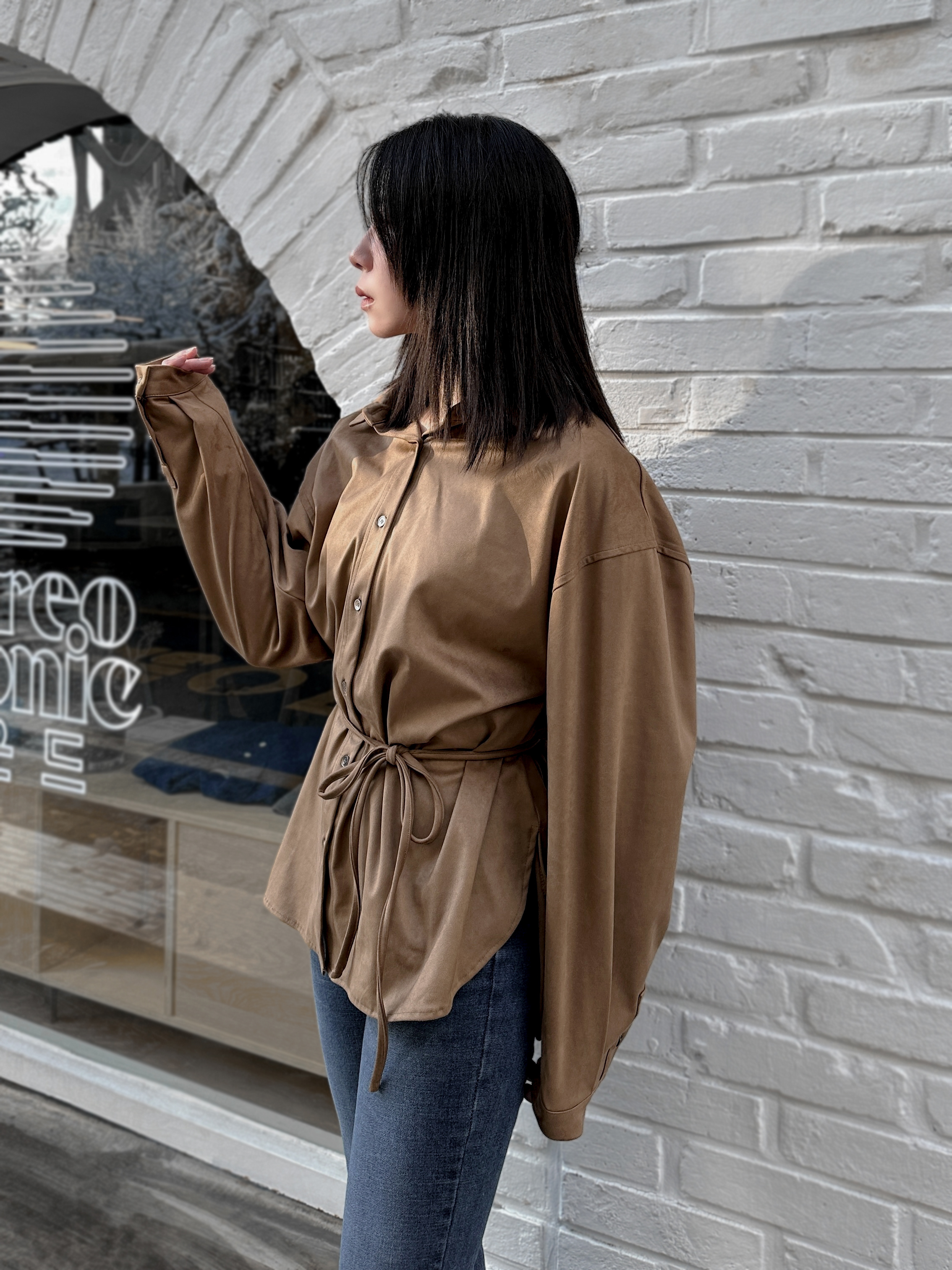 超柔順挺版麂皮襯衫(附綁帶)