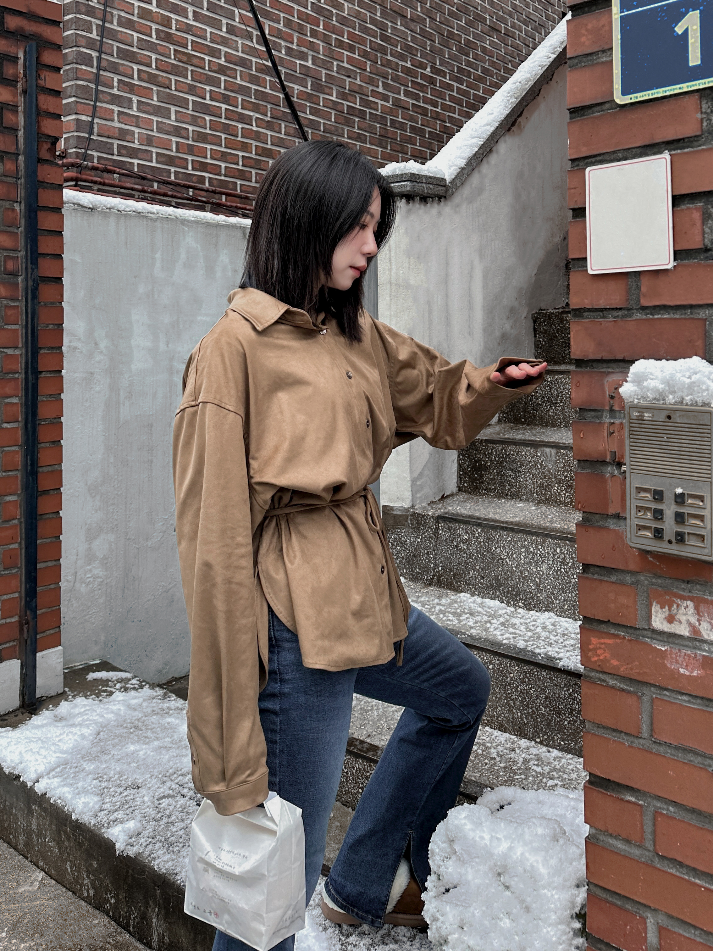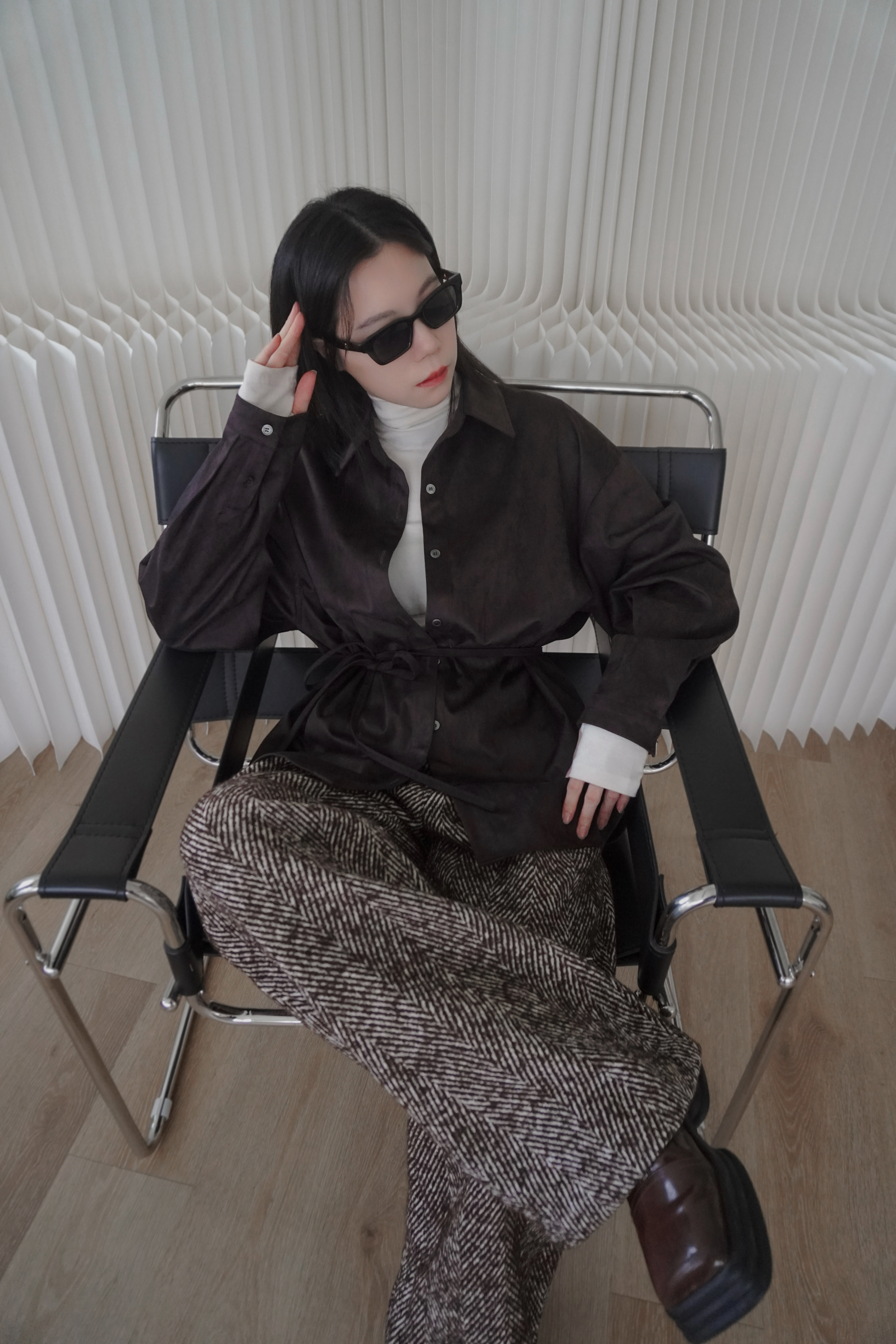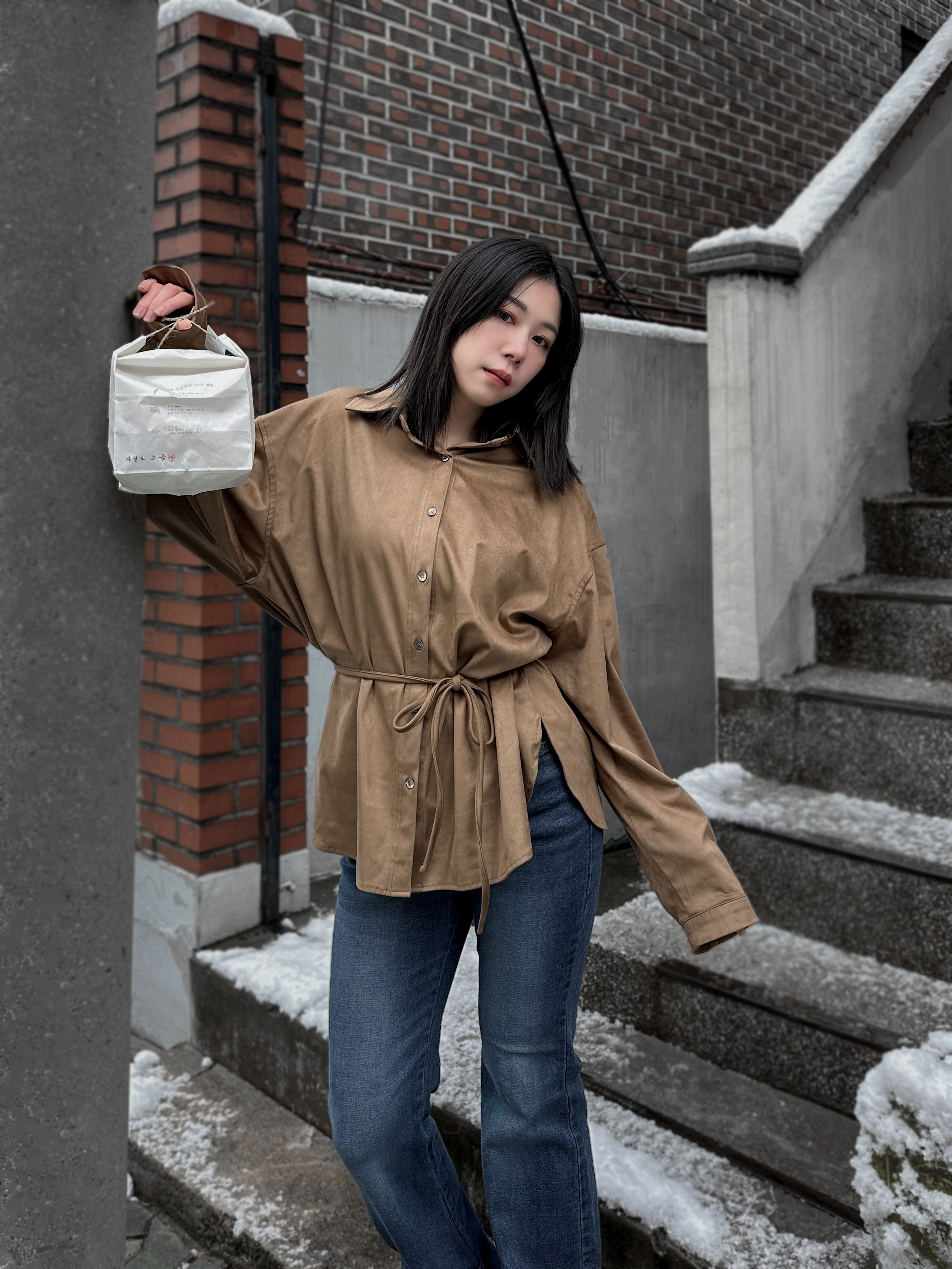 超柔順挺版麂皮襯衫(附綁帶)