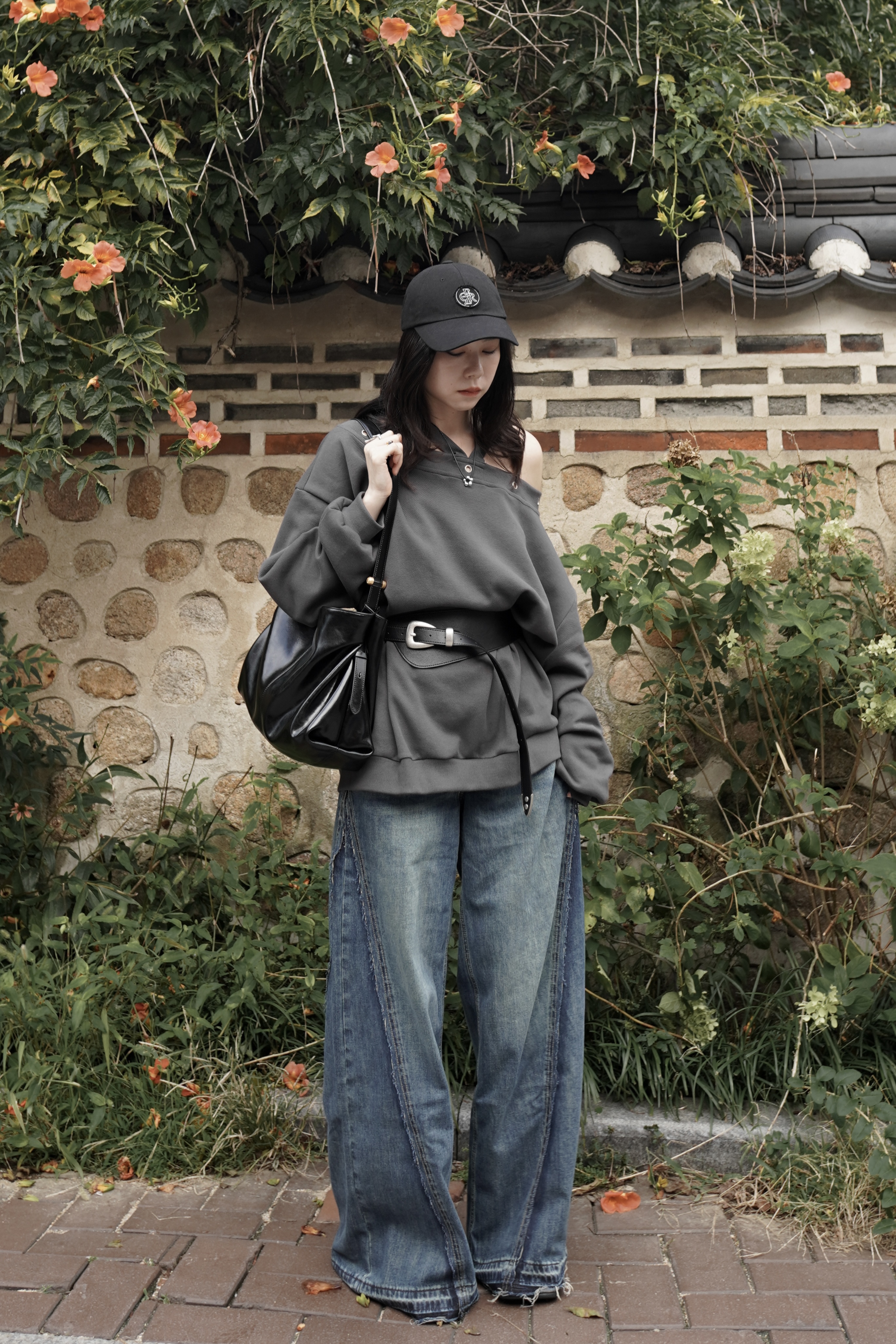 條紋配襯小吊環七分棉褲(咩冷同款)