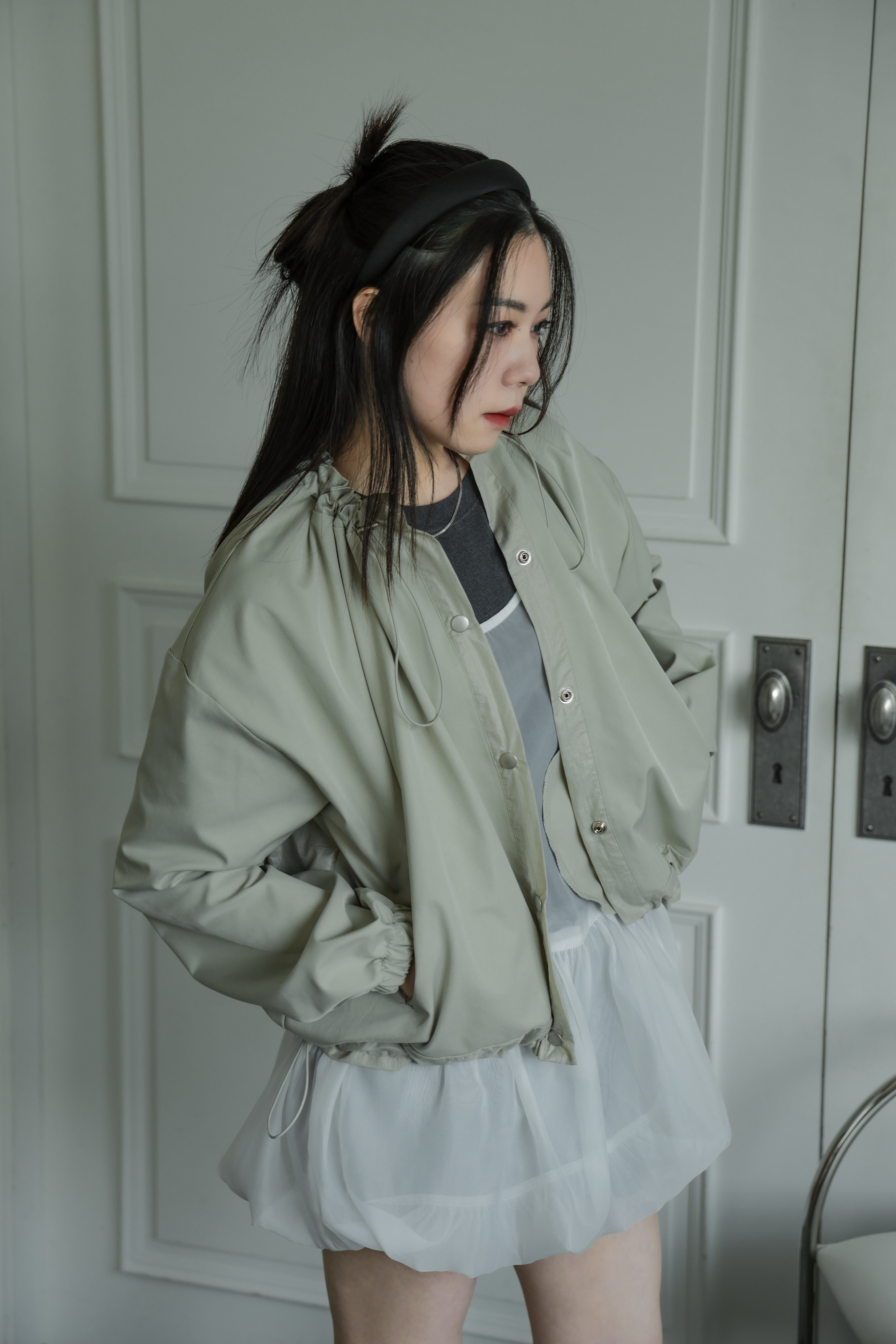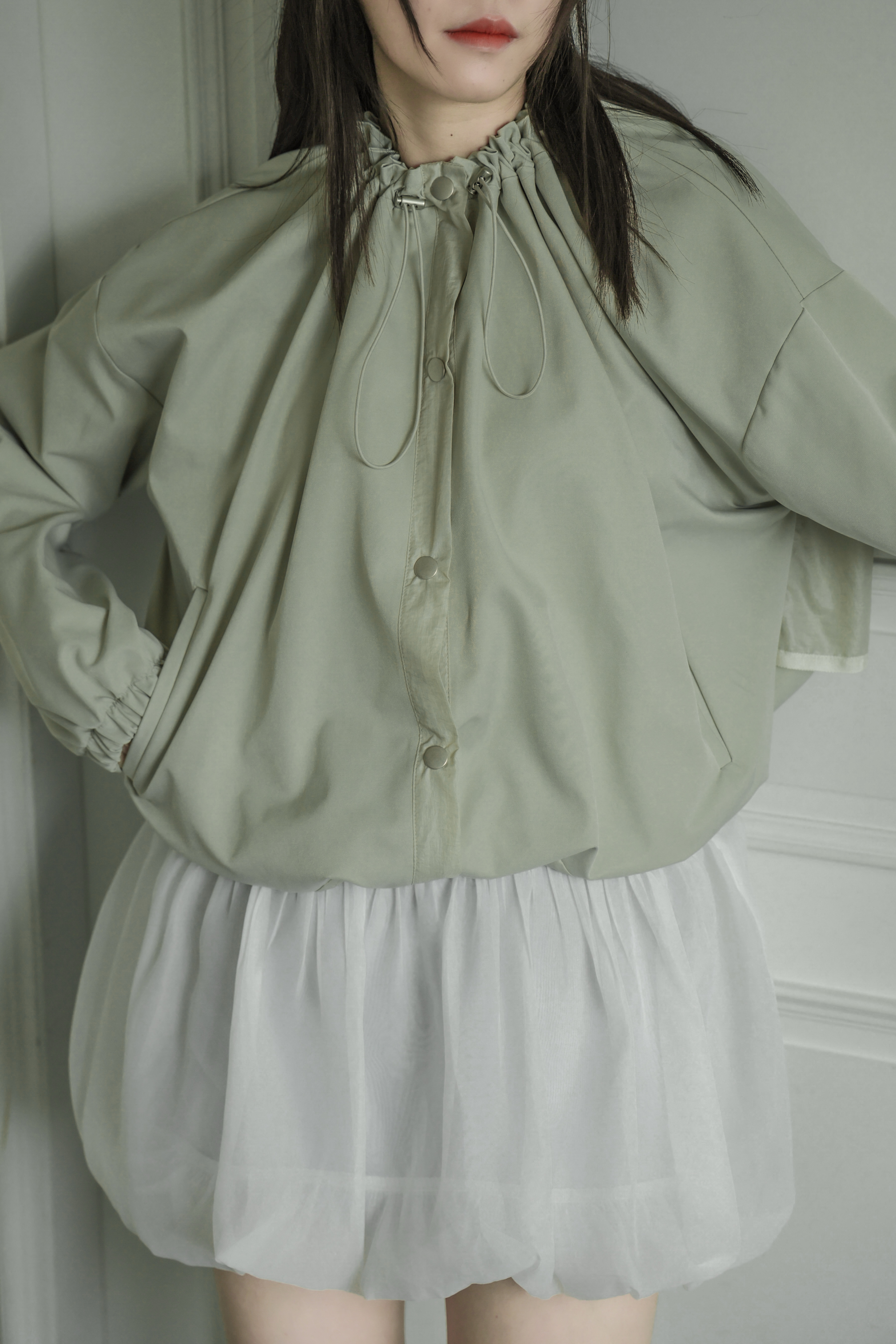 雙層荷葉抽繩排釦風衣外套(咩冷同款)