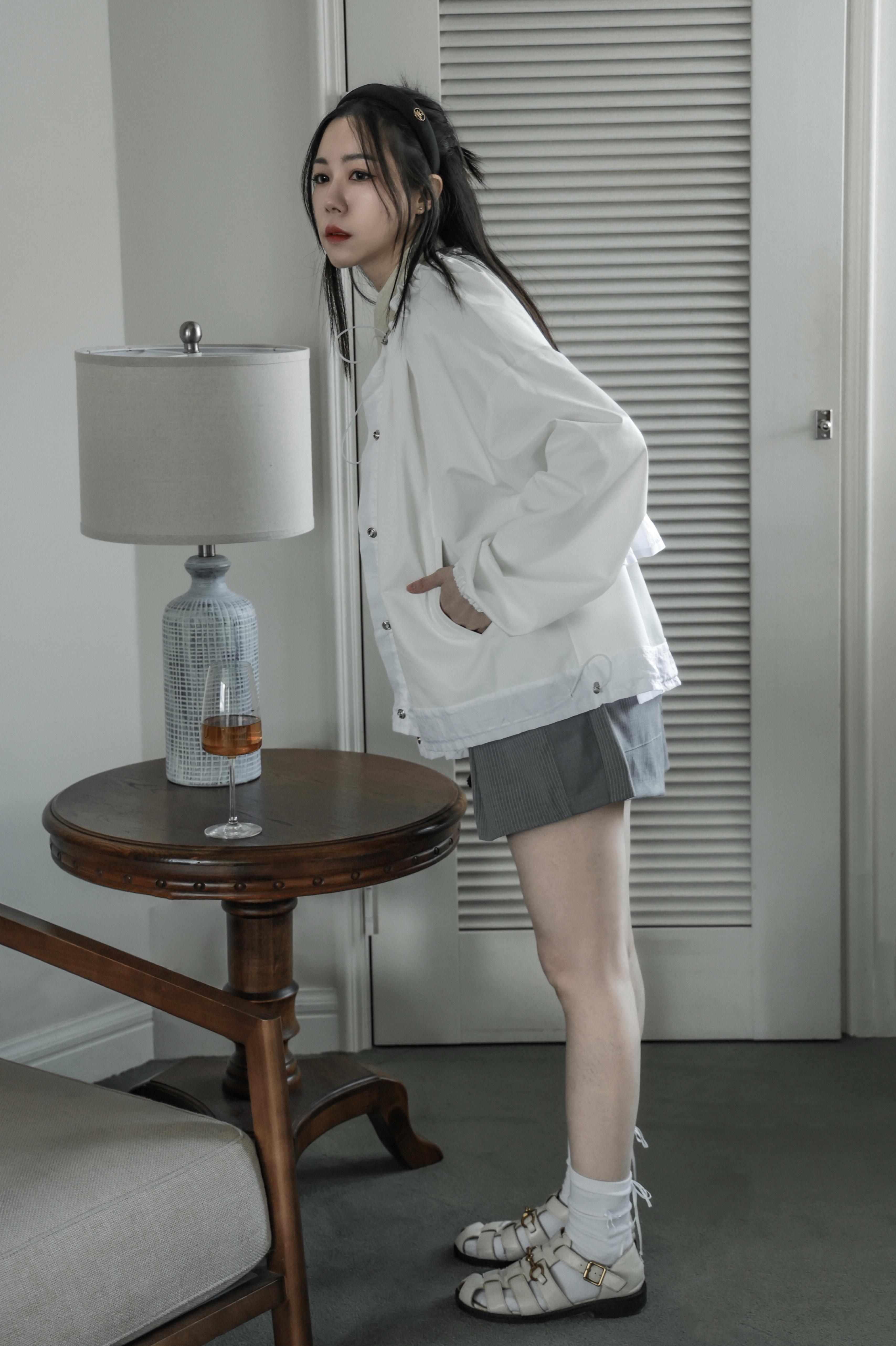搭配寶物條紋綁帶襯裙
