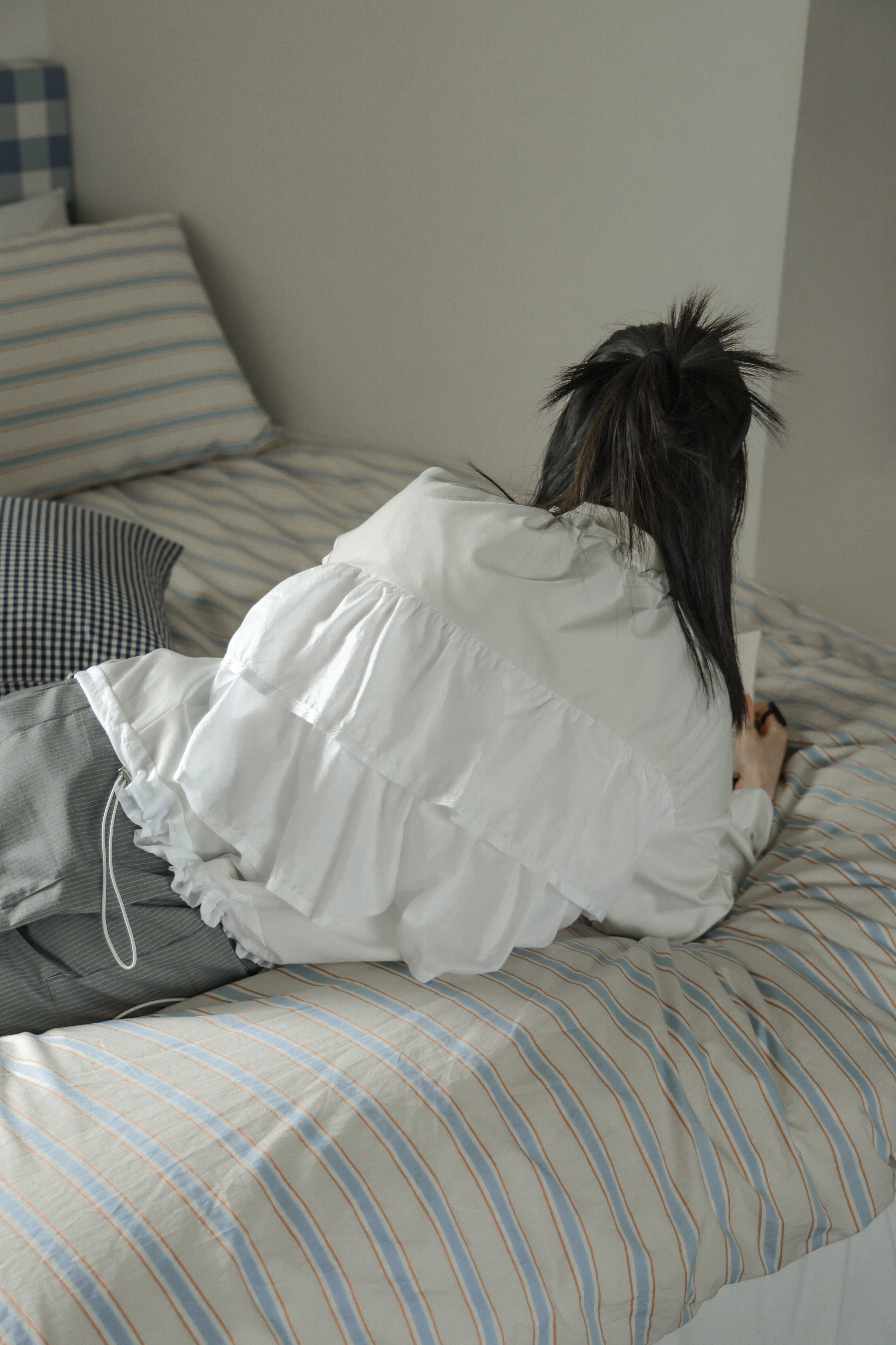 抓皺滾邊少女綁帶上衣