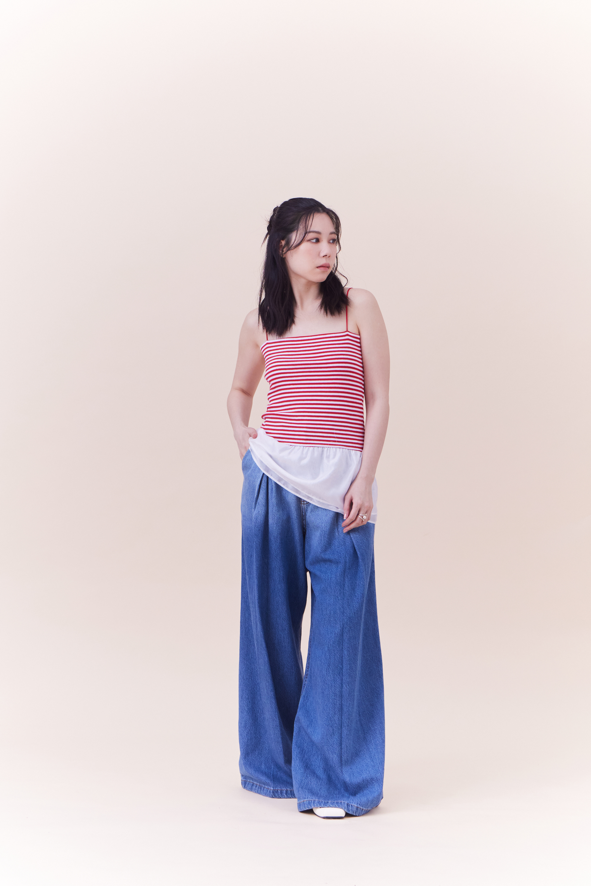 愛心銀標小可愛澎袖條紋襯衫(咩冷同款)