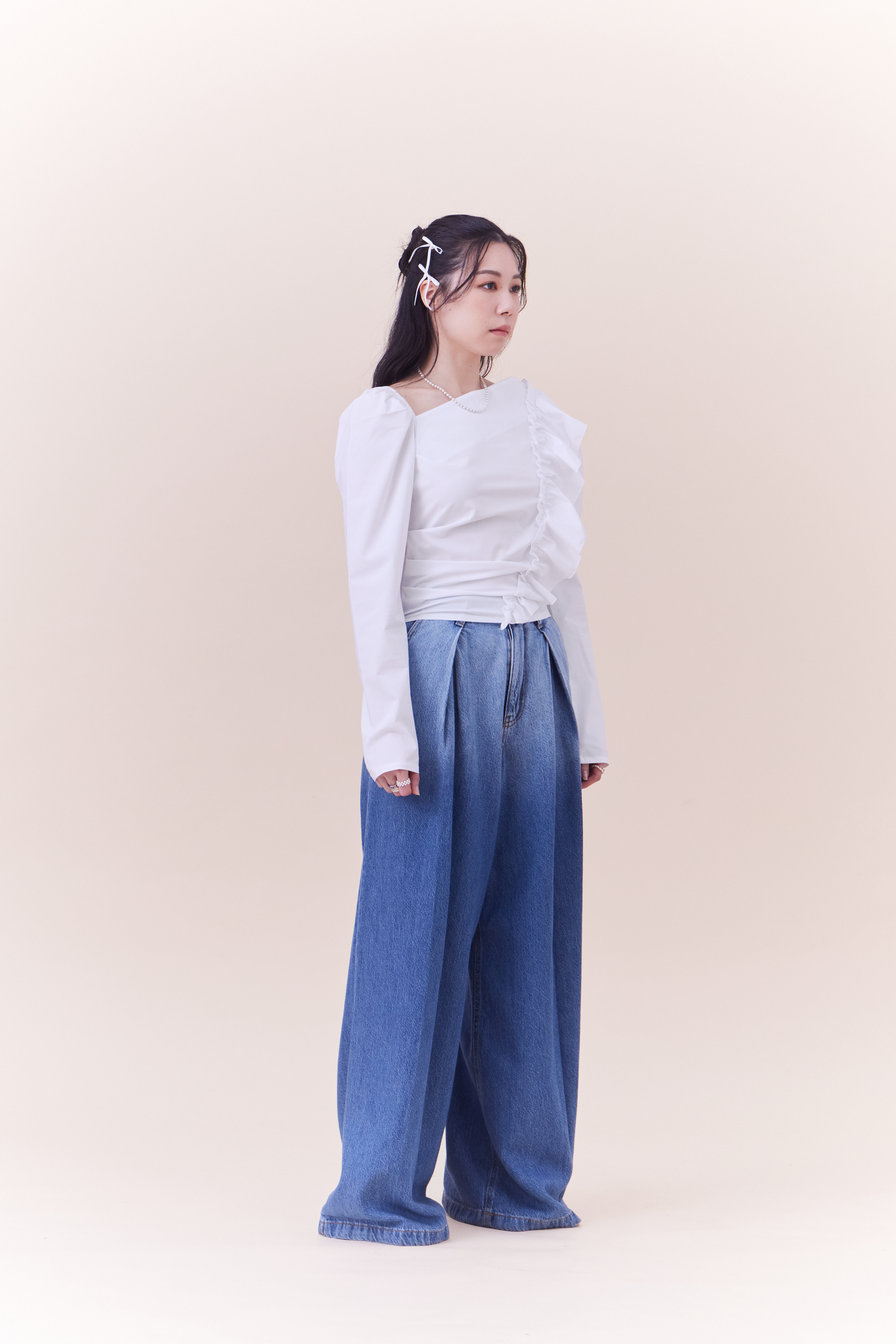 圓弧打褶細節設計襯衫